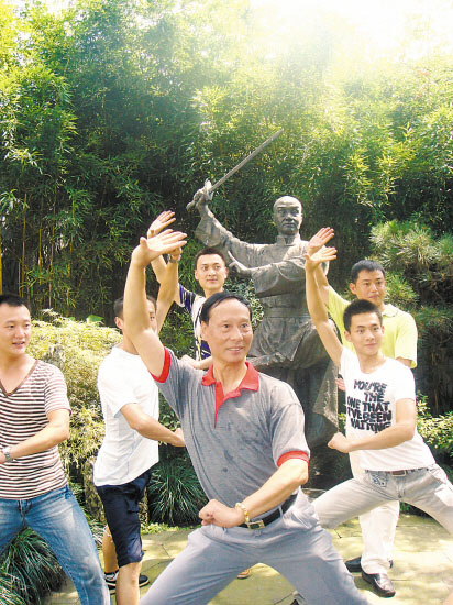今年是盖叫天诞辰120周年,盖老故居庭院里,迎面就立着盖老手持剑,单腿站立,眼观远方的铜像,年轻的学员在前辈面前顶礼膜拜。舞台上小伙子们演的都是“英雄”“枭雄”,威风凛凛,昨天他们在大师面前他们洗净油彩,是谦恭有礼的好学生。