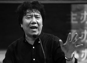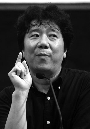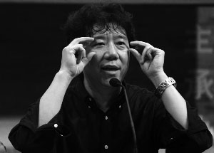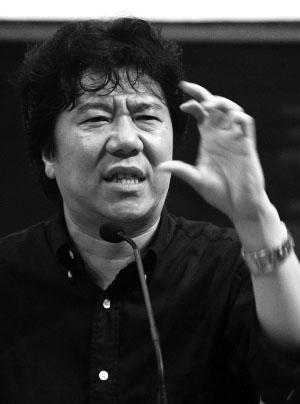 在讲座的前半个小时,孟京辉像一个传统意义上的教授那样,非常学术又非常简练地讲述了中国话剧的100年。气氛稍微有些沉闷,到底在场还有很多非学生的杭州文艺界人士,那些人都是来看传说中孟京辉是如何头上长角,桀骜不驯的。终于,扮了好几回主流的孟京辉忍不住开始较劲了。