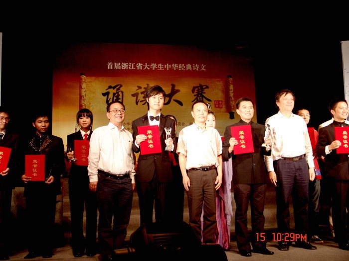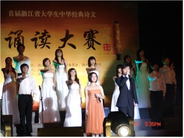 ②浙江省推广普通话形象大使比赛暨大学生中华经典诗文诵读大赛活动捷报频传,我院届届摘金夺银。今年的经典诗文诵读大赛我们更是实现了历史性的突破,三位选手分别荣获金奖、三等奖、优胜奖,夏炜圯同学还作为浙江省大学生代表被选送至教育部参加全国经典诗文诵读大赛。