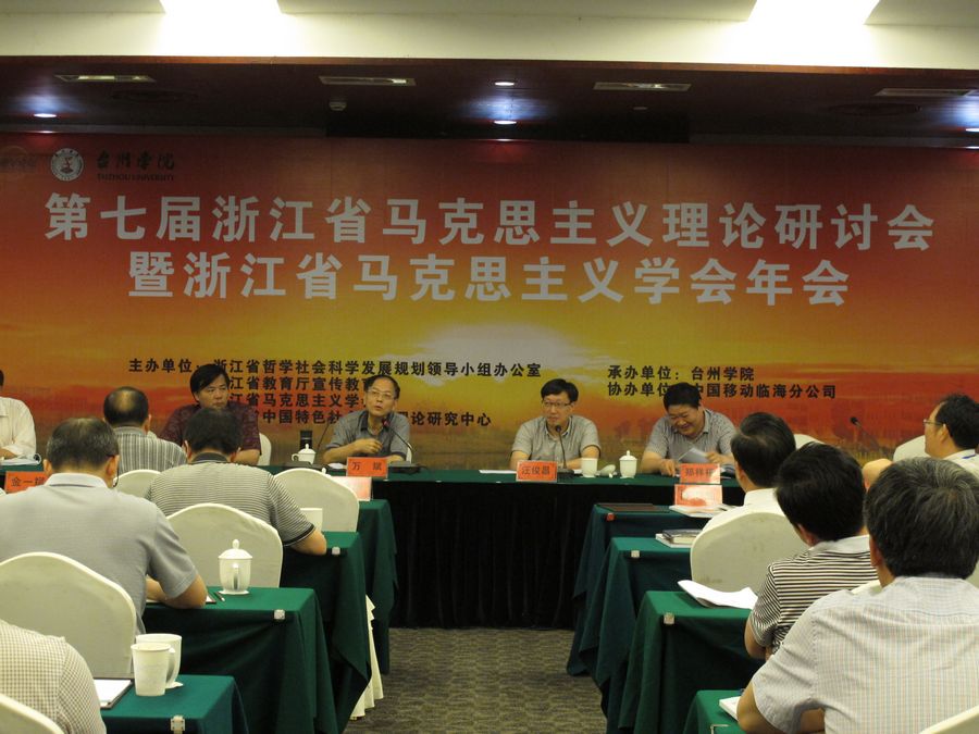 5月31日至6月2日,第七届浙江省马克思主义理论研讨会暨浙江省马克思主义学会年会在临海召开。原省社科院院长、省马克思主义学会会长万斌主持会议,省社科院党委书记张伟斌,省教育厅宣教处处长薛晓飞等领导出席并讲话。全省50多所高校的160余名代表参加会议。