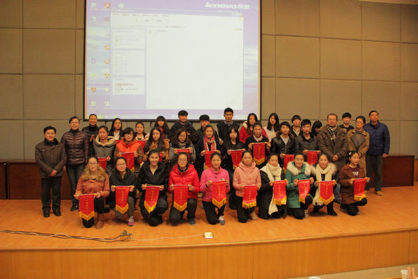 与会领导为获奖寝室成员代表颁发锦旗,对2012-2013学年优秀辅导员、优秀班主任及2013年中专班级教室美化设计大赛的获奖集体进行表彰。
