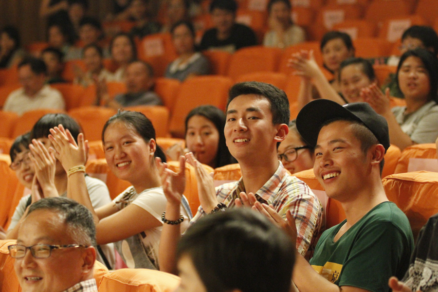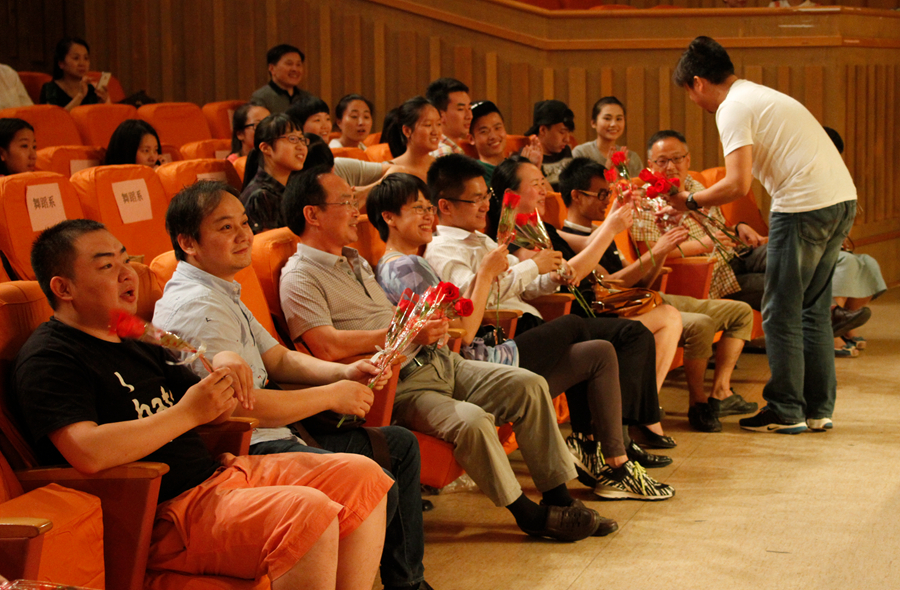 展示环节,15位候选人或演讲人结合视频或PPT进行现场演讲,情景生动感人。基础教学部于圣维老师幽默风趣的演讲方式令演讲给大家留下了深刻的印象,他演讲的主题“我将如何存在”,从教学方法、个人兴趣爱好以及同学们对于他的评价向大家介绍自己。他的书法与水墨画令在场的同学们啧啧称赞。与其他老师激情的演讲方式不同,音乐系黄明智老师的现场展示给人带来一种安静、平和的感觉。他用两种不同的情感表达方式为大家演奏了《送别》,为大家讲述音乐这门艺术,让在场的同学与老师感受他上课的魅力。戏剧系夏帅老师的上台让全场的同学们都活跃起来,作为15位候选老师中最年轻的一位85后,他带给大家的是激情与欢乐。演讲中他结合视频与大家一起分享自己以往的成绩与教学方式,令在场的同学们从侧面感受到与上课时不一样的夏帅老师。基础教学部张海琳老师与学生的视频亲切自然,生动感人,让大家看到了一个如大姐姐般的亲切的师者形象,