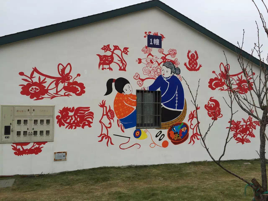壁画以舟山渔民和老年文化元素为主题。绘制渔民画的过程中,学生们直接用粉笔在墙上勾勒出草图;而剪纸图案壁画花纹繁琐直接勾勒难度较大,遂启用投影仪将电子画稿投影到墙面上再勾勒出草图。由于投影仪的特殊性必须在夜晚工作,大家顶着严寒在昏黄的灯光下细心描绘直至深夜,终于勾勒完所有草图。第二天早晨赶在太阳升起时又立即开工准备上色,由于墙面面积大,同学们在2米高的铁架上长时间保持同一姿势且双手没有任何支撑物的情况下作画,也丝毫没有懈怠。居住点的大伯大妈看着一面面素墙瞬时变得丰富多彩起来,连声夸赞道:“晒太阳时看着这些漂亮的画,心情也变得好起来!”舟山当地新闻媒体闻讯后也赶来现场进行了采访报道。