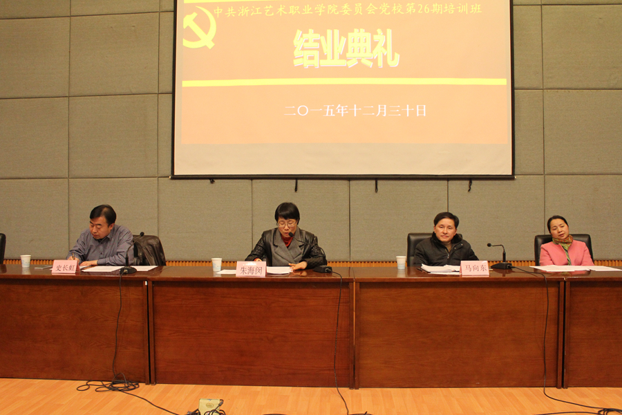 朱海闵在大会上发表讲话。她祝贺获得结业的党校学员和获得荣誉的集体和个人,感谢党校教师的辛勤工作,充分肯定党校的教育教学成果。她对全体学员提出希望:一是要继续加强理论学习,坚定理想信念。巩固学习成果,激发学习热情,始终用科学理论指明自身奋斗和前进的方向。二是端正入党动机,主动接受党组织的教育和考验。入党积极分子要让周围的学生能看出来“你像个共产党员”,是学生中的表率,时时处处起带头作用。三是坚持学以致用,时刻发挥先锋模范作用,以实际行动争取早日入党。从学生时代就培养艰苦奋斗精神和全心全意为人民服务的意识,要带头将自身的奋斗和价值体现,同学校事业发展和实现伟大中国梦紧密结合,坚定人生信仰,坚守平凡梦想,实现人生的精彩和理想的最大化,以实际行动争取入党。她寄语同学们要修身律己,创业做人,展现浙艺风采,追求浙艺品格,做德艺双馨的文化艺术人才。