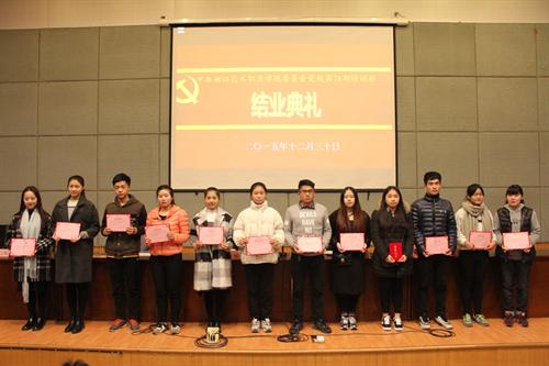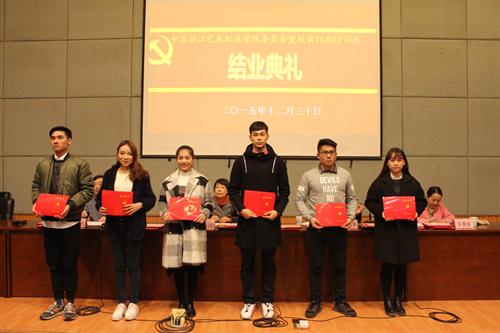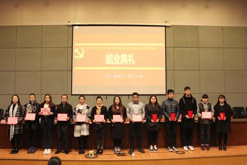 大会在雄壮的国歌声中开始。大会为获得结业的146名党校学员颁发结业证书,公布并表彰了优秀学员、优秀论文获得者、优秀班级、优秀班主任和党校第六届学员论坛暨微型课比赛获奖者。薛静瑶、金幸、王悦璋、吴姚帅、寿中达、兰小燕等14名同学被评为优秀学员,潘俊杰等12名同学获得优秀论文奖,舞蹈系、影视技术系学员班被评为优秀班级,王芳芳、刘梦伟被评为优秀班主任。党校教师代表王儿对党校培训班工作作了总结汇报。党校班长联席会主席、影视技术系优秀学员寿中达代表全体学员发言。