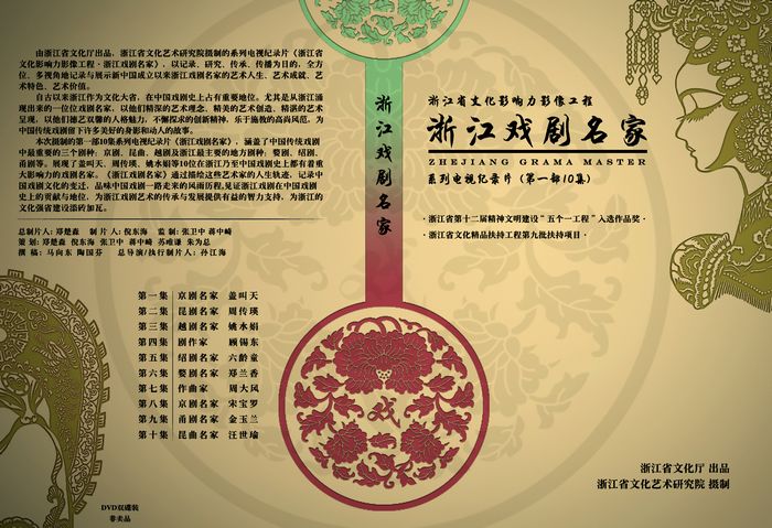 该片获浙江省第十二届精神文明“五个一工程”奖和浙江省文化精品扶持工程第九批扶持项目。该片涵盖了京剧、昆曲、越剧、绍剧、婺剧和甬剧,主要以记录、研究、传承、传播为目的,运用影像记录的手段,全面系统地抢救、记录、梳理戏剧名家们的艺术成就,从其艺术人生、艺术成就、艺术特色、艺术价值等多方位,多角度,再现并演绎浙江省自新中国成立以后第一代戏剧艺术家的艺术成就,并作一次全新的影像总汇编与艺术剖析,传承与弘扬艺术家们的高尚风范与不朽精神,是一部极具艺术审美与艺术研究价值的电视宣传片、教学片、资料片,可作为向全国乃至世界推广浙江文化艺术成果的一项重要项目。该片10位戏剧大师中有盖叫天、周传瑛、姚水娟、周大风是我院前辈名师,另有顾锡东、六龄童、郑兰香、宋宝罗、金玉兰、汪世瑜,10位名家均是戏剧界代表人物。