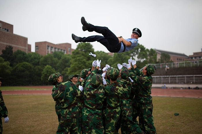 在雄壮的国歌声中,2015级新生军训会操正式开始。伴随着激昂的《解放军进行曲》,30个受阅方队迈着铿将有力的步伐,英姿飒爽地通过主席台,接受院领导和承训教官领导的检阅,展现出浙艺院青年学子奋发进取、勇往直前的风采。沈恒在教官代表的陪同下检阅了各个方阵。阅兵分列式结束后进行了列队基础动作展示。整齐划一的动作、行云流水般的节奏,博得了阵阵热烈掌声。经过半个月汗水的洗礼,入校时的零零落落终变成军人般的矫健威风。