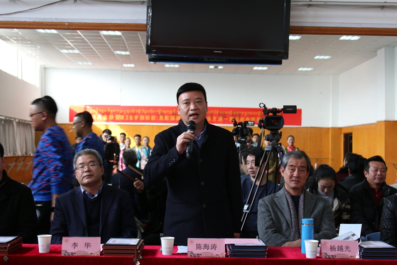 陈海涛发表讲话。他对来自那曲地区的24位年轻的藏族学员圆满完成培训任务、顺利获得结业表示祝贺,对学员们克服诸多困难、传承和弘扬“老西藏”吃苦耐劳的精神点赞,对浙艺院全体老师付出的辛勤劳动表示感谢。他介绍了浙江省发改委近些年对培养西藏地区文化艺术人才所投入的建设力量。他希望学员们深刻领会文化交流的重要性,消除民族隔阂,增强民族团结,加强交往。他希望浙艺院认真总结经验,为后续的文艺骨干培训做好各项准备工作;希望学员们回去以后积极发挥桥梁和纽带作用,把浙江的情谊带回西藏,同时发挥艺术骨干作用,创造更多、更好的作品来浙江交流,展示藏北风采。