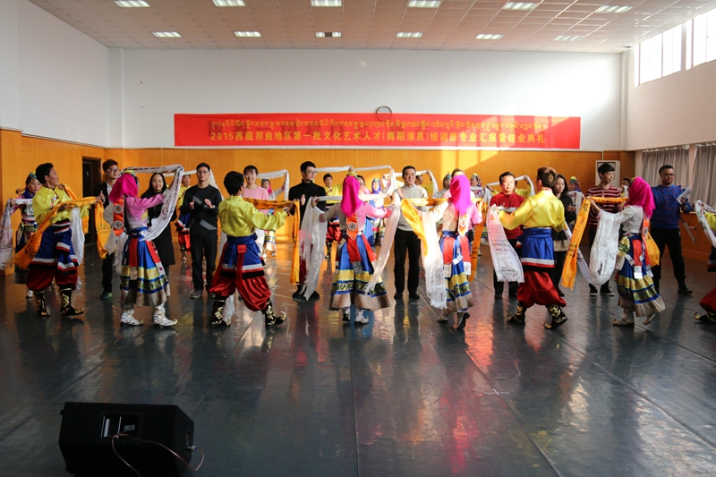 浙江省发改委党组成员、浙江省对口支援办公室专职副主任陈海涛,浙江省文化厅党组成员、副厅长杨越光,浙江省发改委对口支援处副处长骆方豪,浙江省援藏指挥部指挥长、那曲地区行署常务副专员李华,西藏那曲地区文化局副局长、培训班总领队陈毅,浙艺院党委书记朱海闵、党委副书记黄杭娟、舞蹈系主任张星、继续教育学院院长谢青等出席结业仪式。黄杭娟主持结业仪式。承担培训和管理工作的舞蹈系、继续教育学院教师和部分舞蹈专业学生到场观摩。