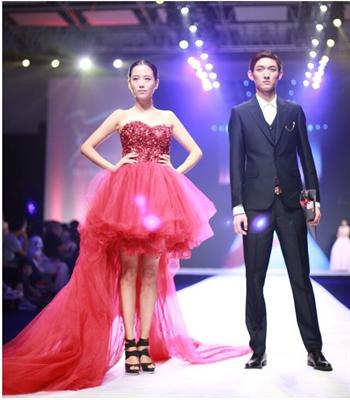 晚上7点左右,随着身穿黑色泳装的模特一个个登上T台,舞台灯光随之亮起,成果汇报展正式拉开帷幕。