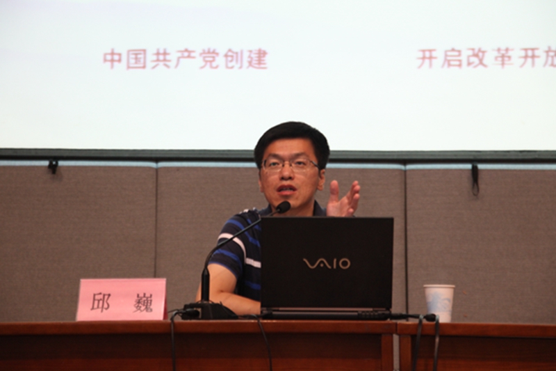 邱巍教授的报告以丰富的史实、鲜明的观点、精辟的语言,把中国共产党近100年的历史与中国道路探索的主题相结合,围绕中国共产党领导中国革命、建设和改革,经历了前后相继的三段“中国道路”展开。从中国共产党与中国革命道路、与中国建设道路、与中国特色社会主义道路三个方面,生动阐述了中国共产党近百年艰苦卓绝的风雨历程。