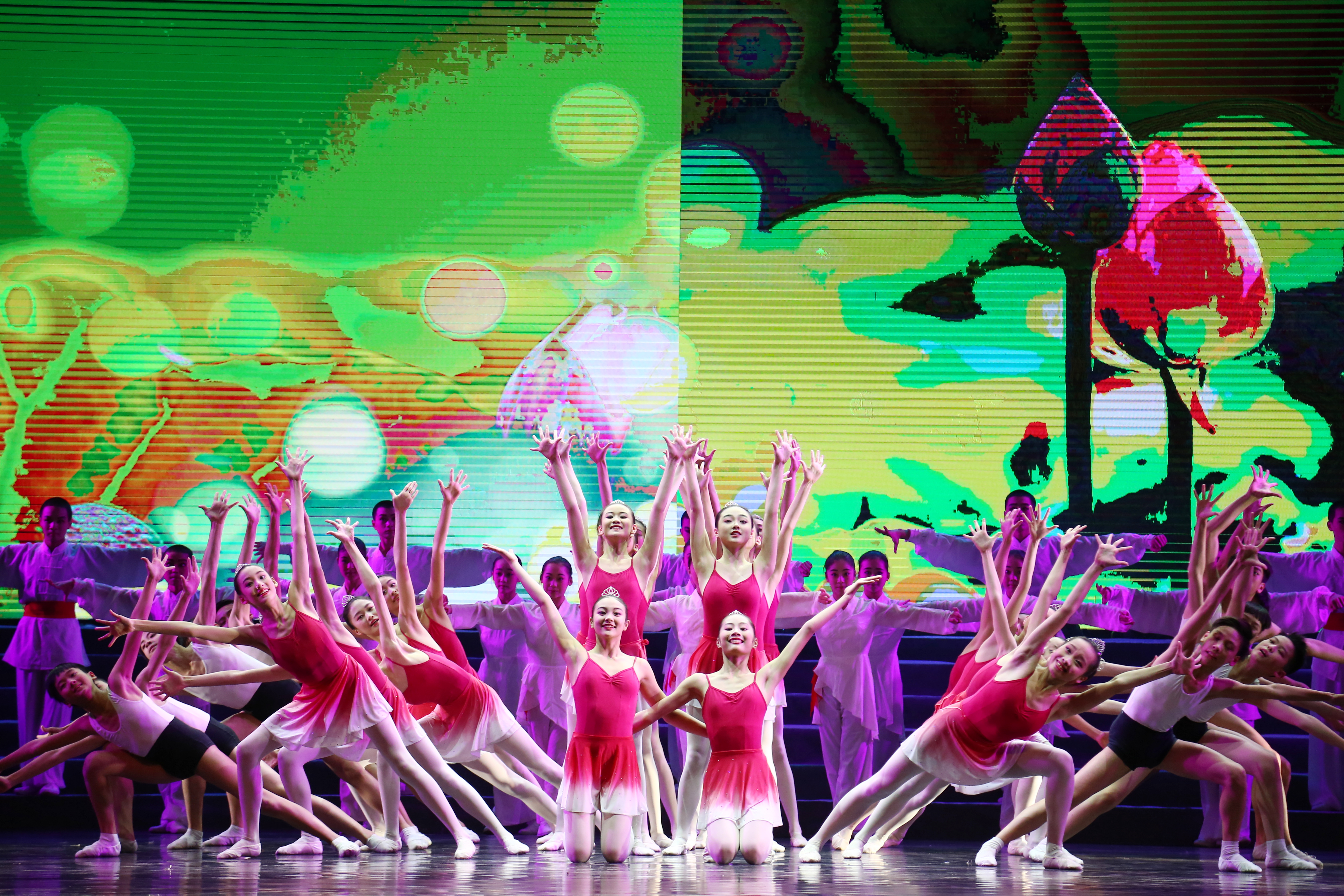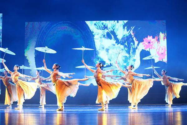 歌舞《摇篮》拉开了演出序幕。摇篮守望着生命,见证着成长,浙艺作为艺术家的摇篮,在60余年办学历程中,始终坚持党的文艺方针,秉持“艺术为民”情怀,耕耘着艺术教育园地,承载着一代代学子的梦想启航;打击乐《萌·动》热情似火,荧光鼓棒挥舞出一片片扇形魅影,激扬的鼓声应和着心脏欢快的跳动,似乎新的梦想迈着同样的步伐走来了;群舞《红船》在省大艺节新获专业组一等奖,以意象性的动作语言表达着信仰、生命和希望,“一根红绸”连起的是对美好未来的憧憬;女声独唱《Racheal》由学院音乐表演专业学生周旸演出,这位“2016中国新歌声”那英战队学员,站在大舞台上潇洒自信,沸腾了现场观众;音舞诗画《雨后梧桐》展现的是足尖上的魅力,附中芭蕾班学生执着油纸伞,轻舞婀娜,营造出“斜光照疏雨,一叶下梧桐的意境”。