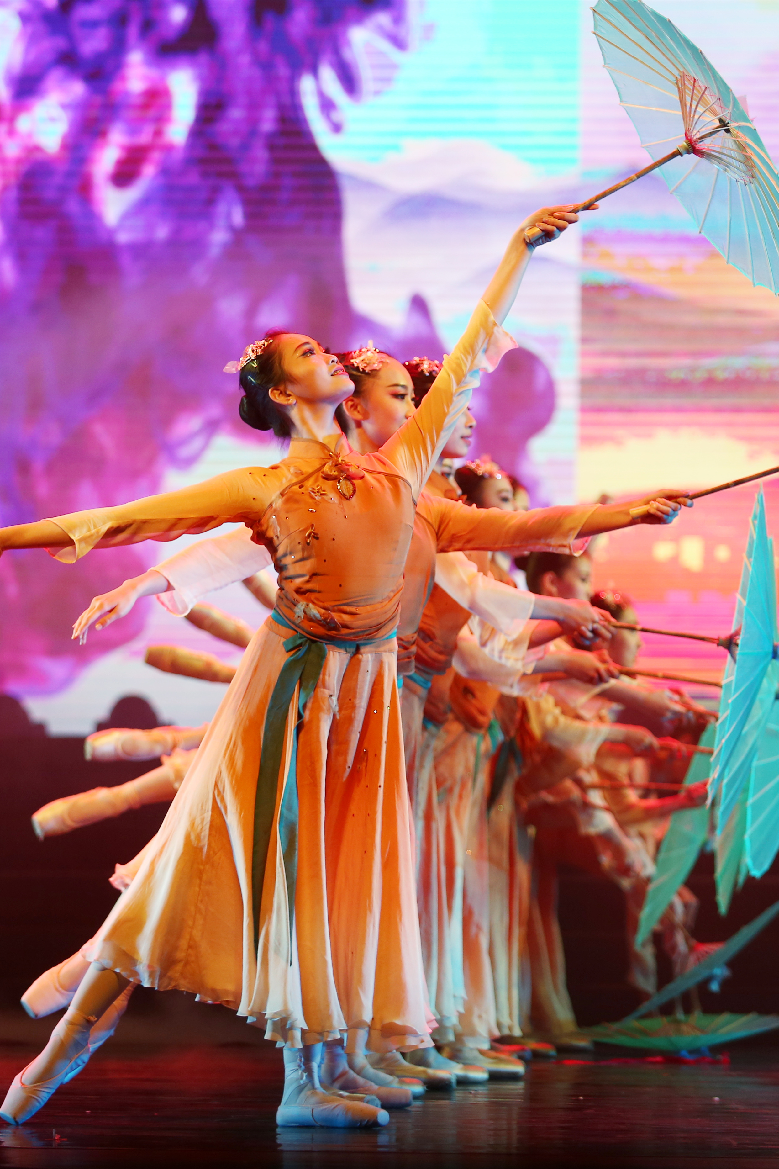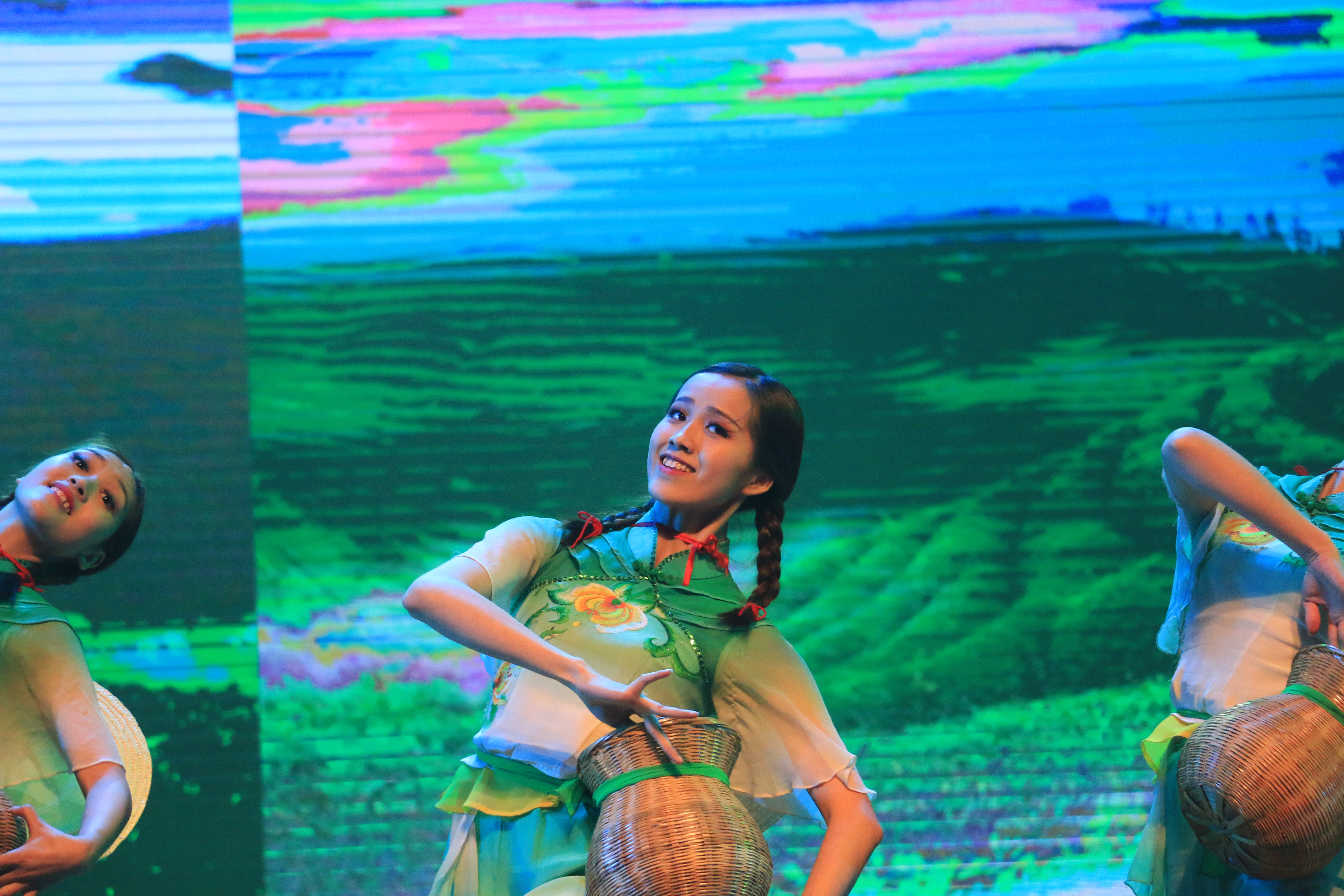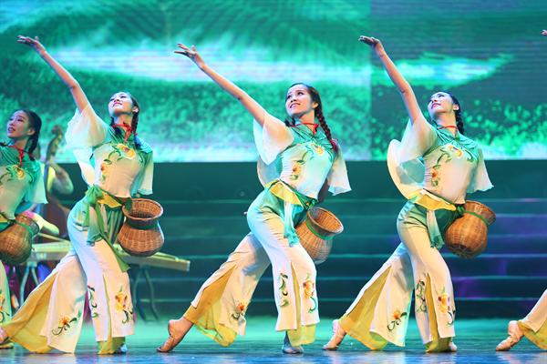在G20杭州峰会舞台上,浙艺舞蹈系60多位女生参与演出的《采茶舞曲》曾惊艳世界,这次也被改编进了新年晚会,民乐、小组唱和舞蹈结合,展示了各个专业学生风采,一起演绎出溪水清清的江南味道;歌曲服饰秀《丝绸畅想》则让人感受到扑面而来的时尚复古风,浙艺模特与礼仪专业学生穿上丝绸服饰,在韩紫娟悠扬的歌声中款款走来,歌者曾获省第九届音舞节流行唱法金奖;女子群舞《畲家女儿拍》曾获第十届“桃李杯”舞蹈比赛群舞组一等奖、园丁奖,被一代代浙艺舞蹈学生演绎过,绑在手臂和腿部的六块竹板在舞者的敲击下,传出悦耳节拍声将观众带领到独特的畲家风情中。