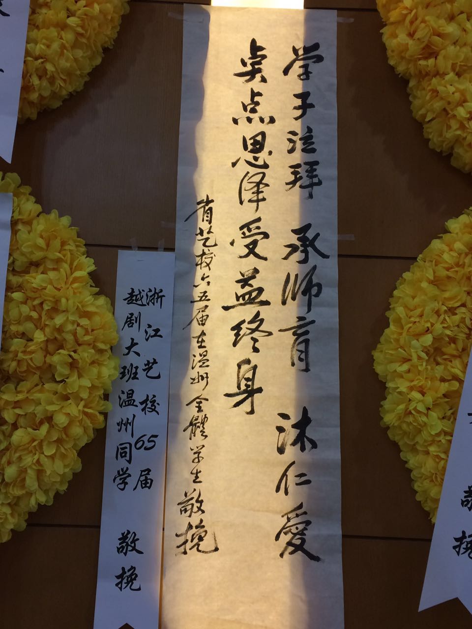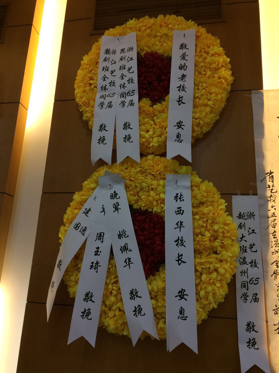 原省委常委、宣传部部长、省政协副主席孙家贤,原省委宣传部常务副部长沈晖,省文化厅厅长金兴盛、副厅长陈瑶、副巡视员任群,省文化厅老领导钱法成、沈才土、杨建新、杨越光,浙艺党委书记朱海闵、院长黄杭娟、纪委书记徐芳,省影协主席高克明,中国剧协副主席茅威涛,省委老干部局领导王晖玲和浙艺校友等到场告别,寄托哀思!