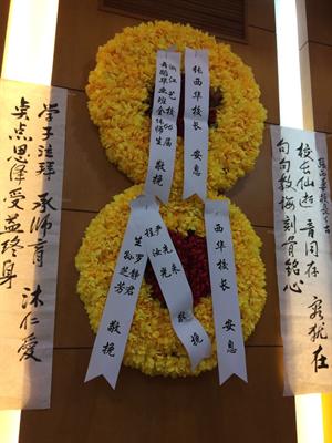 张西华是浙艺主要创建者之一,老校长的离开,多少浙艺人为之不舍、悲痛。“校长仙逝,音同存,容犹在,句句教诲刻骨铭心;学子泣拜,承师育,沐仁爱,点点恩泽受益终身”“治校有方,洒九天雨露,满园桃李竞相妍,幸千秋业绩得长存;功德无量,领百年风骚,两袖清风上天台,盼师生来世续前缘”……在告别仪式现场,浙艺人的一幅幅挽联,字里行间都是对张西华老校长的怀念和告白。