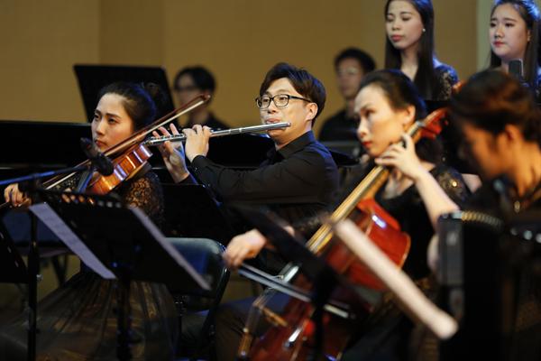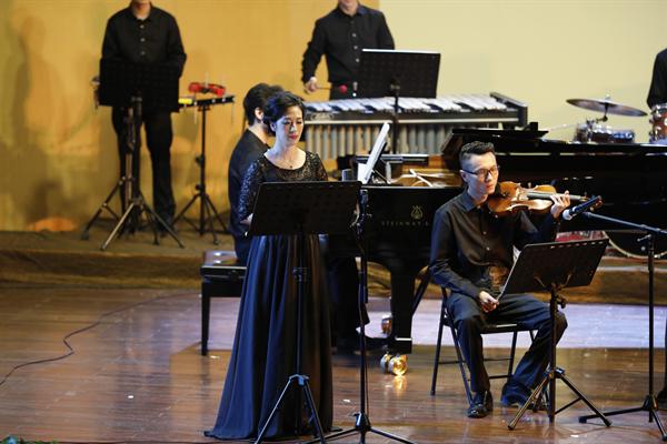 全场音乐会的乐曲有诗意,有越韵,有现代音乐词汇彼此相交融。作曲家丁樱的《剡水曲》,探索中国音乐的张力表现,虚实之变、动静之变、清浊之变,有着强烈深沉的音乐表现;青年作曲家景新的《神隐西罨居》,则运用了浙江仙居童谣的音乐素材,用西洋管弦乐与中国拉弦乐器、弹拨乐器共同演绎。这种新颖的音响与结构有着当代年轻作曲家的表达方式,不同乐器在乐曲进行中流淌、静止,而又互相编织。