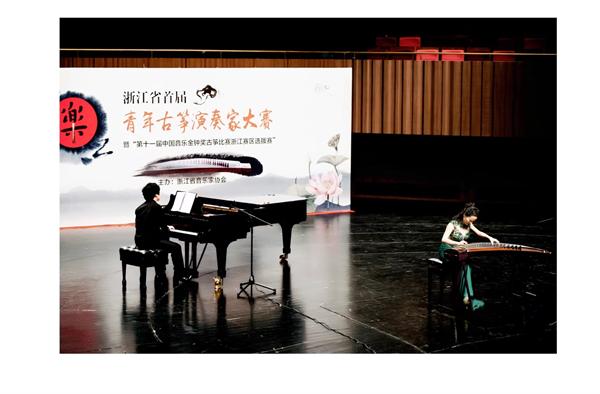 浙江省首届青年古筝演奏家大赛的设立,旨在推动浙江省古筝艺术的发展,促进古筝演奏人才的成长。比赛分选拔赛、决赛两轮次进行。在选拔赛中,夏金瓯以传统曲目《四段景》和创作曲目《林泉》在众多选手中脱颖而出,进入决赛。此次决赛的曲目《云裳诉》为我院特聘教授周煜国的作品,也是夏金瓯精心选定的。此曲目的钢琴及民族弓弦室内乐版本曾在去年音乐系民族室内乐音乐会中由夏金瓯首演(浙江地区),排练过程中,周煜国对作品的诠释也使夏金瓯更深入地感受到了作品的精髓,而在本次决赛中,她更是将《云裳诉》弹出了一番“风味”,效果甚好。