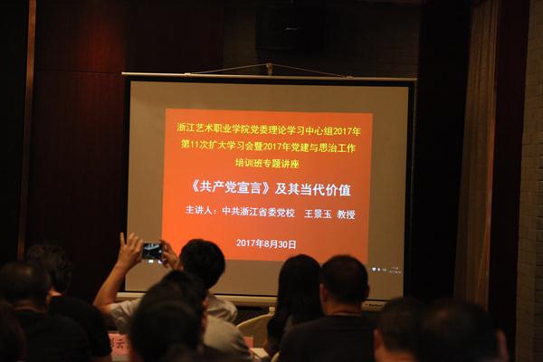 朱海闵在主题报告中表示,举办此次培训班,旨在深入学习贯彻习近平总书记7·26重要讲话和系列重要讲话精神与治国理政新理念新思想新战略,学习贯彻落实全国、全省高校思想政治工作会议精神和省第十四次党代会精神,研究提出落实管党治党、立德树人要求,推进“两学一做”学习教育常态化制度化,全面提升学校党建和思想政治工作水平,助推“源头培育文艺新人”和优质高等职业院校建设,为“文化浙江”建设作贡献的思路和举措。主要任务是进一步统一思想、提高认识,理解要求、明确任务,针对实际、研究措施,共谋合力、共推落实。