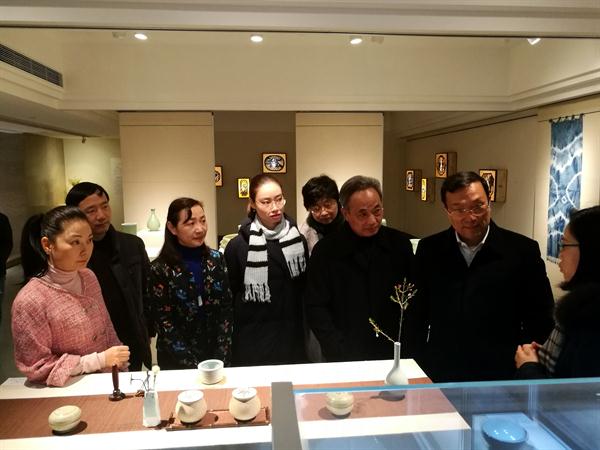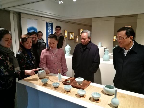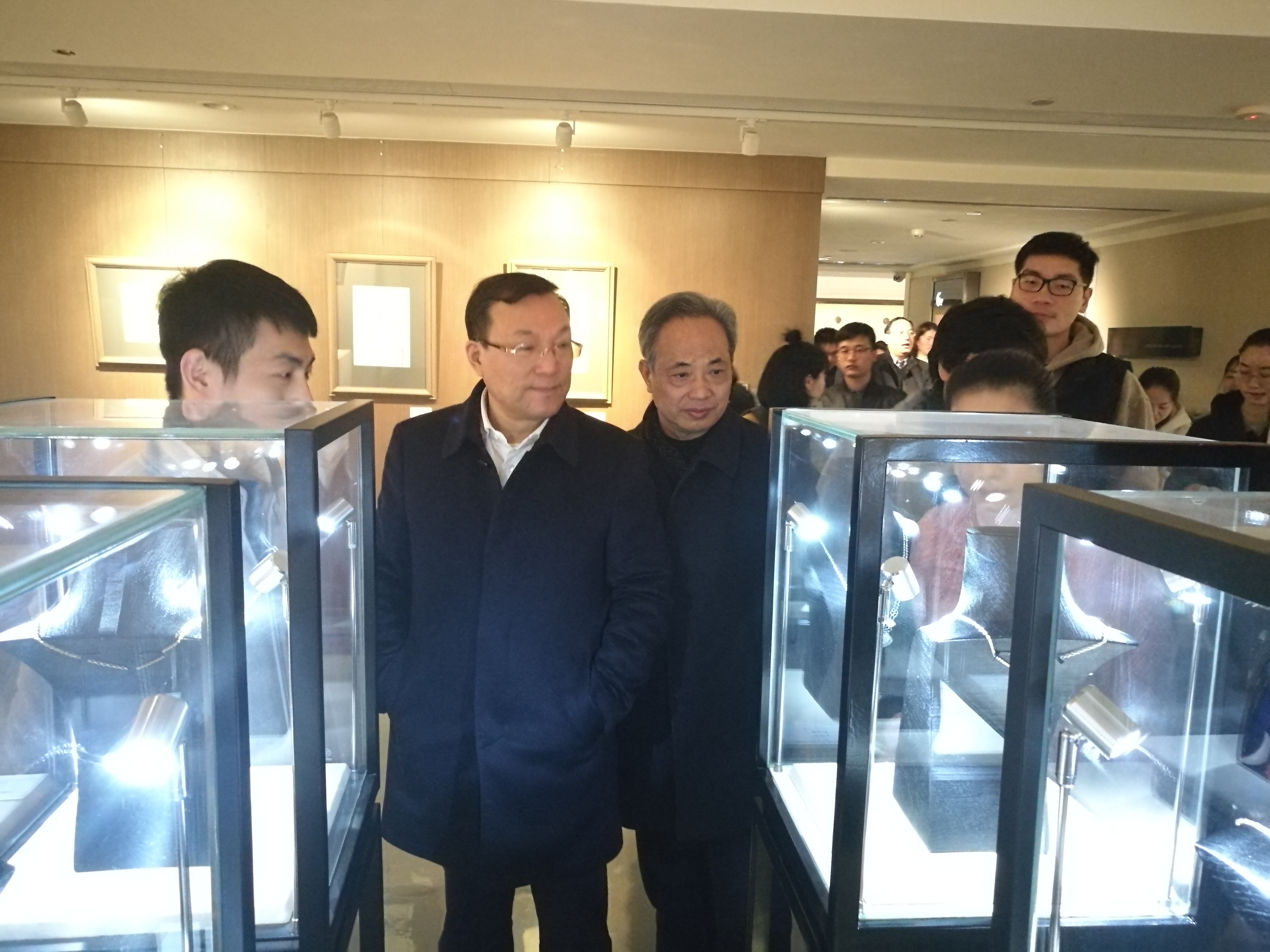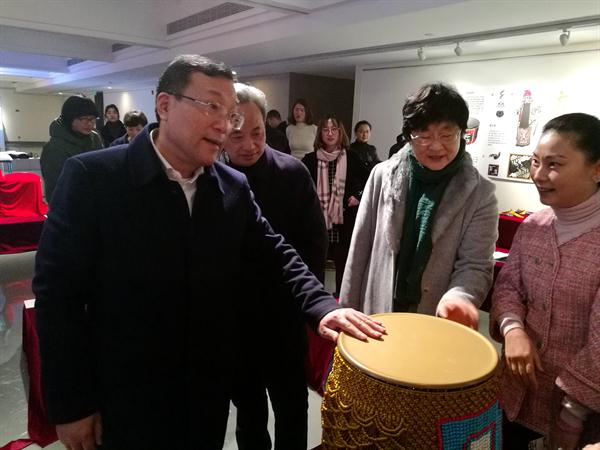 张鸿铭在各展区仔细参观浙艺美术系和文化管理系的300余件优秀毕业作品,聆听了各专业指导老师就作品的设计理念、制作工艺、社会效益等方面的详细介绍。张鸿铭表示,此次展览内容丰富,展出了各专业的优势和特色。