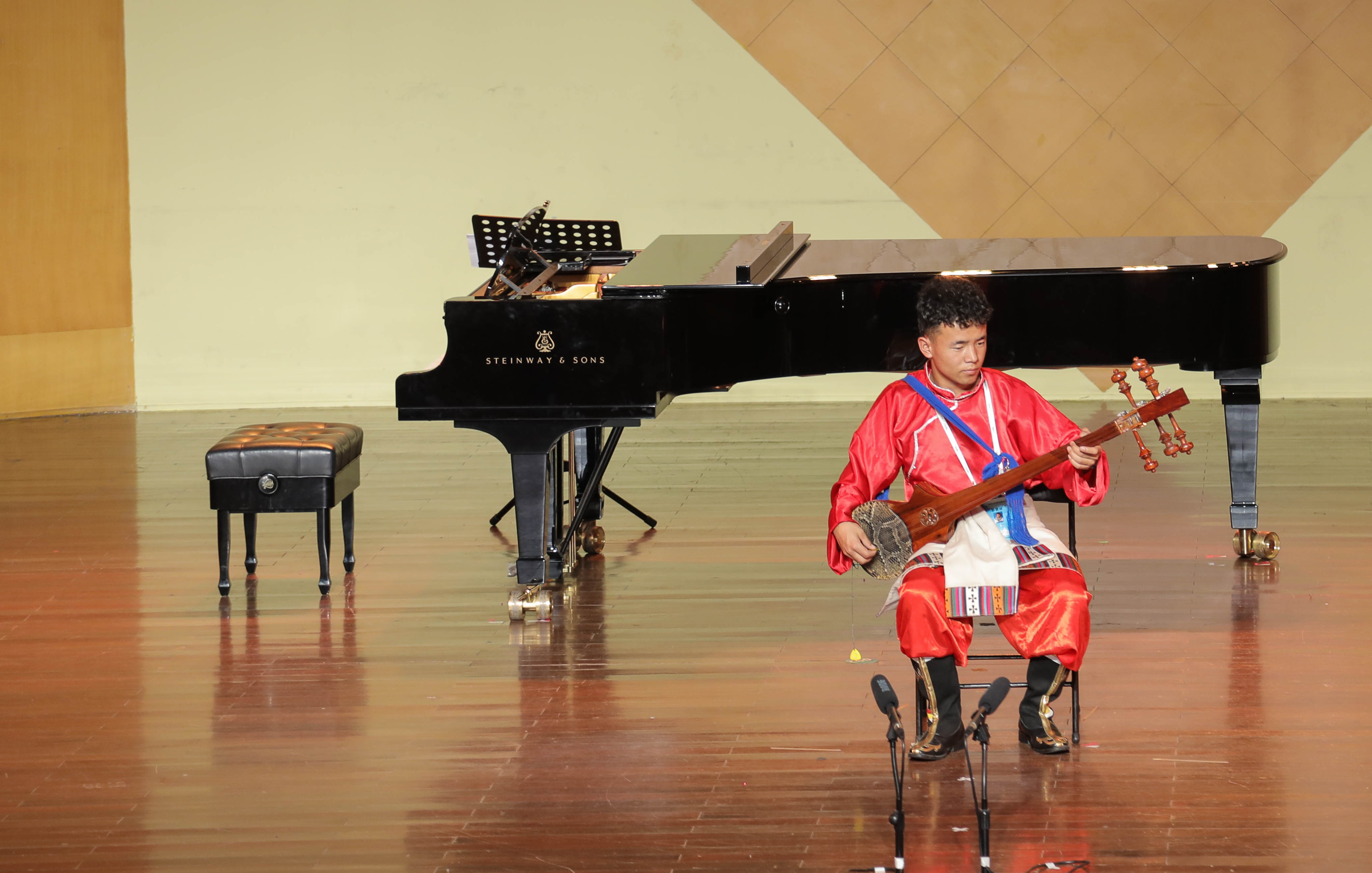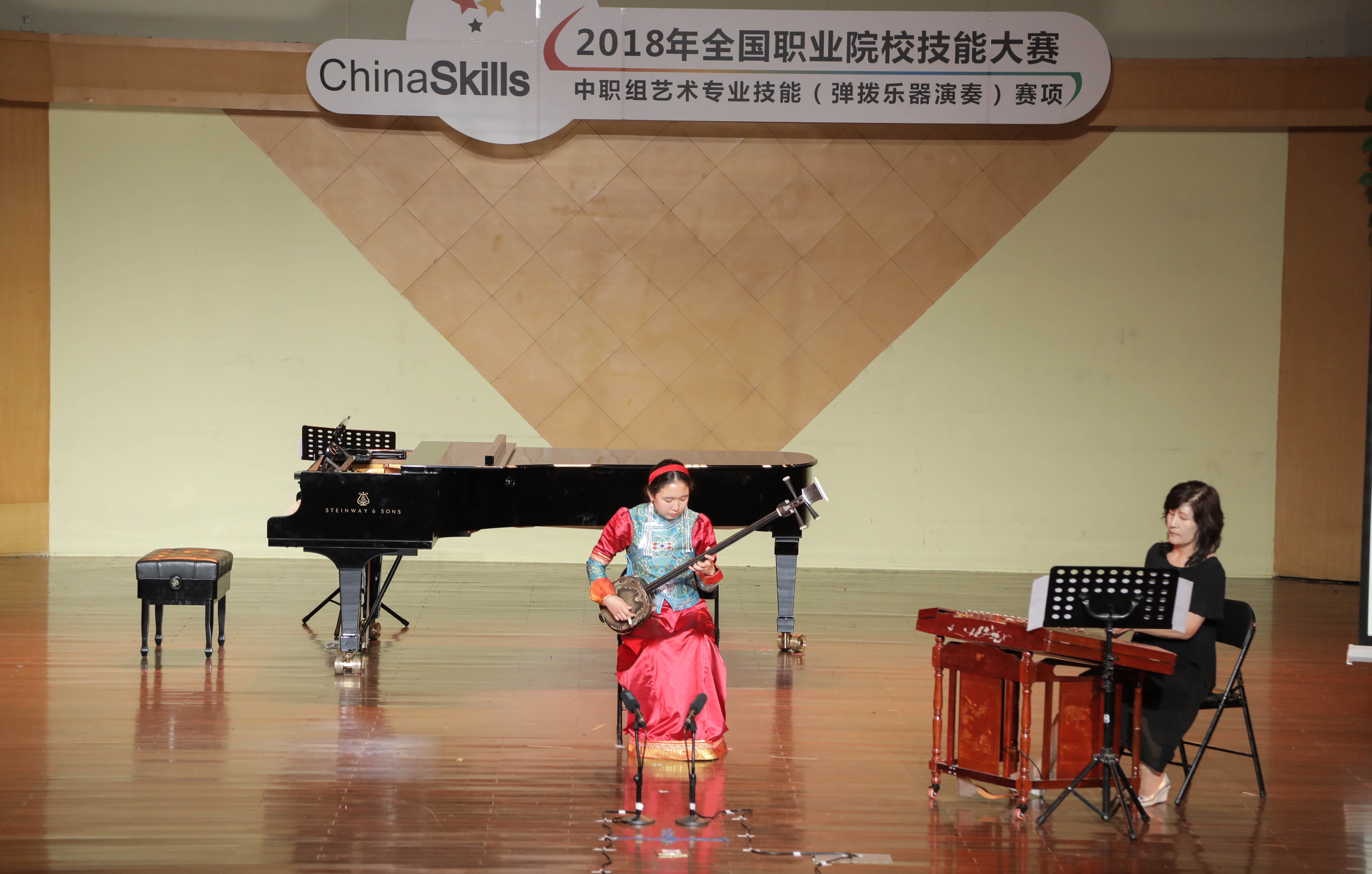 在另一边同时开赛的音乐厅中职赛场上,来自全国各地的中职选手们年龄虽小,扎实的专业基本功一样令人刮目相看,锋芒尽显。古筝独奏《幻想曲》率先登台亮相,极富地域特色的节奏营造出热情奔放、载歌载舞的场景,也将赛场气氛调动了起来。高难度的筝曲《苍歌引》博得评委的称赞,取材自广东戏曲音乐的《魂断马嵬坡》奏出了刻骨铭心的别离之情,而《战台风》又将人们面对天灾的艰难和勇气呈现了出来……来自广西艺术学院附属中等艺术学校的参赛选手熊婧怡的参赛曲目是琵琶独奏《阳光照耀着塔什库尔干》。这是一首由民歌改编而来的琵琶曲,乐曲慢板部分抒情优美,表现了大草原的美丽风光,快板部分技术难度较高,欢快活泼,体现了当地人们载歌载舞的欢乐生活场景。她在接受采访时表示,这次来杭州参加全国职业院校技能大赛艺术专业技能赛项,见识到来自全国各地高水平选手的精彩表演,拓宽了知识面,也有了完善自身、展示自我的机会。