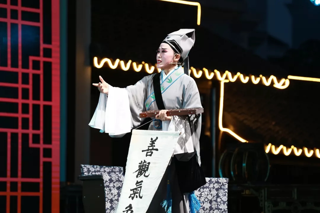 在绍兴镜湖新区,大树江畔,有一个闹中取静的城中新村,大树港。月光洒在波光淋漓的河面,临河就是一座有水乡特色的戏台,7月27日晚,浙江省民营文艺表演团体折子戏精品展演最后一场在这里上演,吸引了附近灵芝、东浦、袍江等地戏迷前来观看。