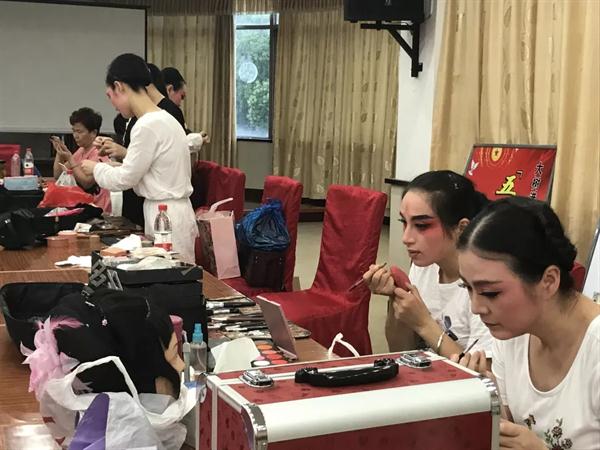 7月1日至7月27日,浙江省民营文艺表演团体折子戏精品展演在全省各地上演了9场演出。每一场幕后,负责装台、舞美、灯光、音控的,都是浙艺教学实践部团队,舞台总监宋苏明说,从7月1日离开家到7月27日最后一场,中间没回过家,将近一个月了。一天赶路,一天装台走台,一天正式演出,再赶往下一个场地,9场演出每一天都安排得满满当当。几乎每个演出场地,地面是饱吸了一天热气的水泥地在散热,上面是舞台强光灯照下来,四周又有围墙,不太通风,场地里又人多,每一天舞美队员衣服都被汗湿透。宋苏明说,有一句俗语是“好汉不挣六月钱”,就是说夏天太热了。但我们这9场演出还是必须安排在7月,因为只有这个时段,民营剧团演员们才有空挡,平时他们演出太多了。天气虽然热,比较庆幸的是,演出还是顺利的。民营剧团都非常珍惜这样的演出机会。教学实践部马笑迎这次还从幕后走向前台,担任主持。在台州展演时,有一位主持人临时有事走了,宋苏明临时想到,马笑迎形象气质合适,普通话也好,临时安排她救场。马笑迎说,第一次上去,穿的还是自己平时衣服,手是抖的,紧张得快爆炸了。三场下来,她笑称自己可以开辟第二职业了。