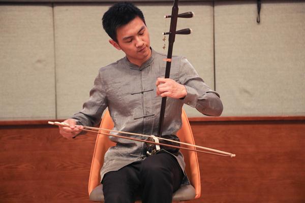 展示结束,戏剧系候选人刘欢和他的同学表演的相声《如此创新》、音乐系何文翔的二胡独奏《万马奔腾》让现场气氛格外热烈,欢声笑语掌声不断。