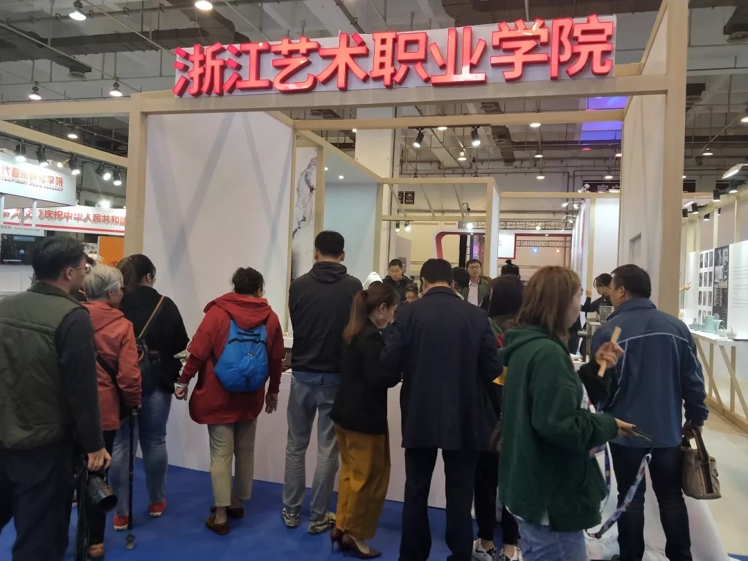 中国艺术职业教育学会会长李力、副会长兼秘书长孙伟、副会长陈智林等参观了浙艺展区,对学校在传统文化继承与发展上的努力给予积极肯定。