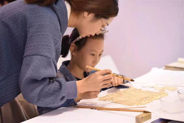 在艺术教育成果展示与交流区,浙艺展厅吸引了众多关注。本次参展主题为“格古通今·浙艺守艺”,分文物修复、青瓷烧制、装裱技艺、女红技艺四大展示模块,展厅设计古典雅致,内容蕴含中华优秀传统文化传承、审美追求表达、手艺在新时代社会价值等,展出作品皆为浙艺文化管理系师生所作,主要涉及文物修复、古籍修复、印染技艺、手绣技艺、金工技艺、青瓷烧制等。