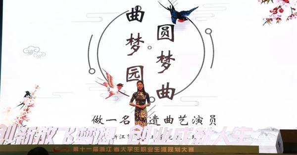 11月4日至6日,第十一届浙江省大学生职业生涯规划大赛决赛在浙江理工大学举行。此次比赛分职业生涯规划类和创新创意类项目。我校戏剧系18级曲艺表演班学生应文琦在指导老师许瑛、王园园和陈丽老师的指导下,携职业规划类项目《曲梦园,圆梦曲——做一名非遗曲艺演员》亮相决赛,并凭借其良好的现场表现,脱颖而出,获得高职高专组一等奖。这是继我校学子荣获第十届浙江省大学生职业生涯规划大赛高职高专组创业类一等奖之后的,同级赛事不同类别的又一个一等奖,同时,学校在此项赛事中还首次获得最佳组织奖。许瑛、王园园和陈丽获优秀指导教师奖。