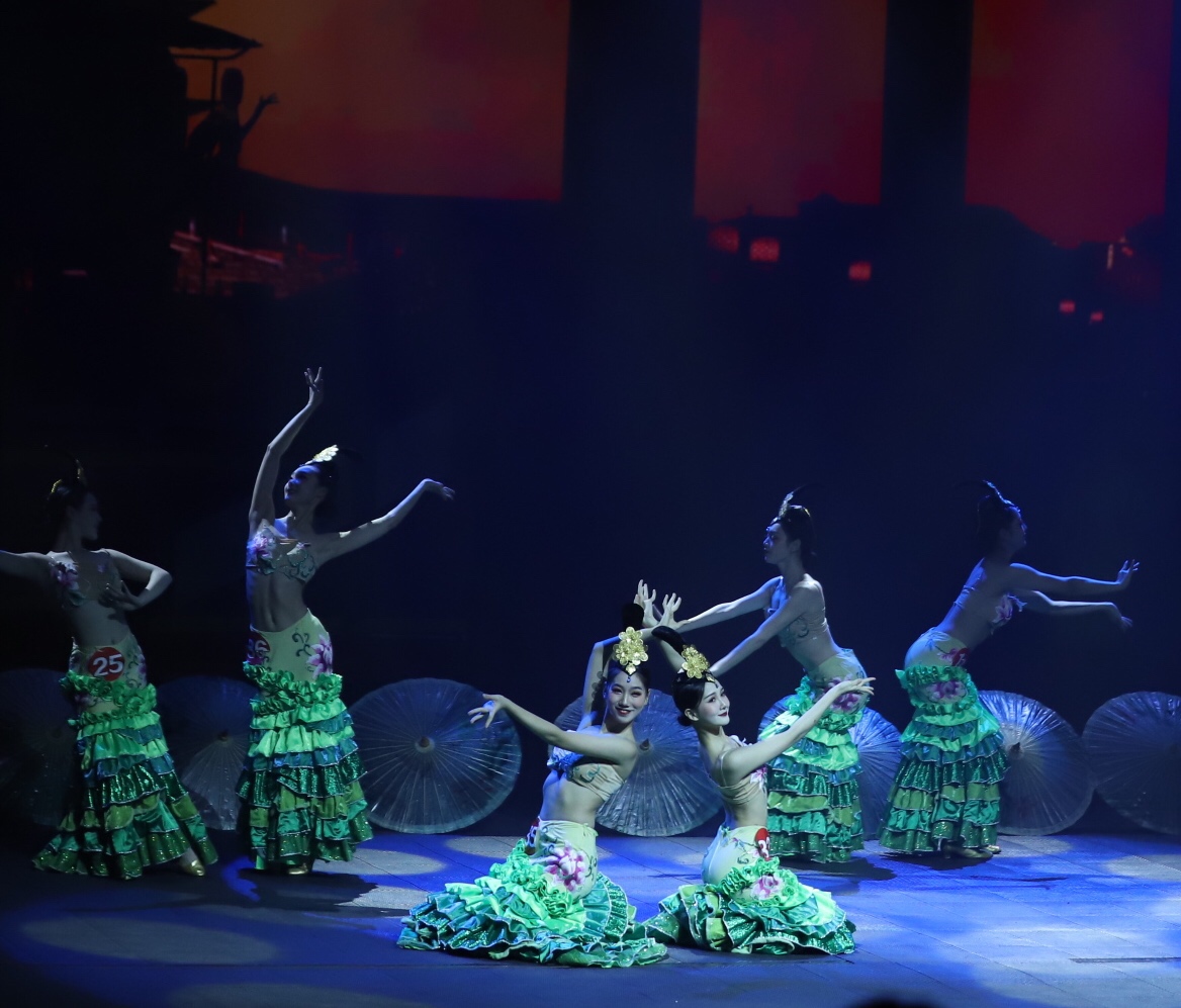 宋城集团对宋城班期末实践汇报和“家长开放日”活动高度重视。同学们学生不仅参与助演原创历史舞台剧《长安十二时辰》和技术技巧展示两个块面,还专门展示了一段千古情《霓裳》舞段。同学们在舞台上流露出自信的眼神,娴熟的动作、优美的舞姿、真情的演绎,充分展现了一个学期以来的实习成果。通过这半年的舞台实践,同学们的专业技能水平和综合职业素养迅速提升。尤其在舞台表现力方面,同学们表现出了格外的成熟和稳重,充分体现了现代学徒制订单班的实践特色和校企接轨育人优势。