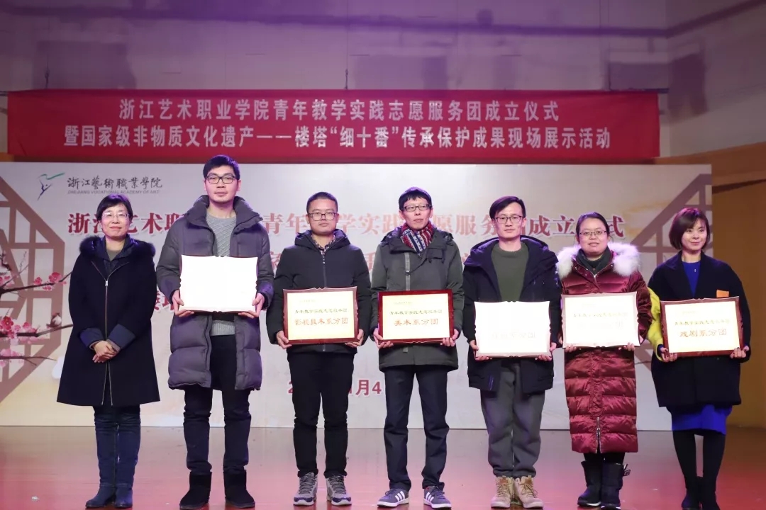 大会表彰了2018年国家级非物质文化遗产——楼塔“细十番”传承保护工作优秀团队、先进个人,音乐系分团、影视技术系分团、文化管理系分团获“优秀团队”荣誉,青年教师赵瑾、常轶伟、祝杭红、张凌、卢伟、段廉、夏金瓯、宋煜获“先进个人”荣誉。浙艺青年教学实践志愿服务团代表、浙江省文化志愿服务“最美志愿者”、音乐系青年教师卢伟作志愿服务经验分享。