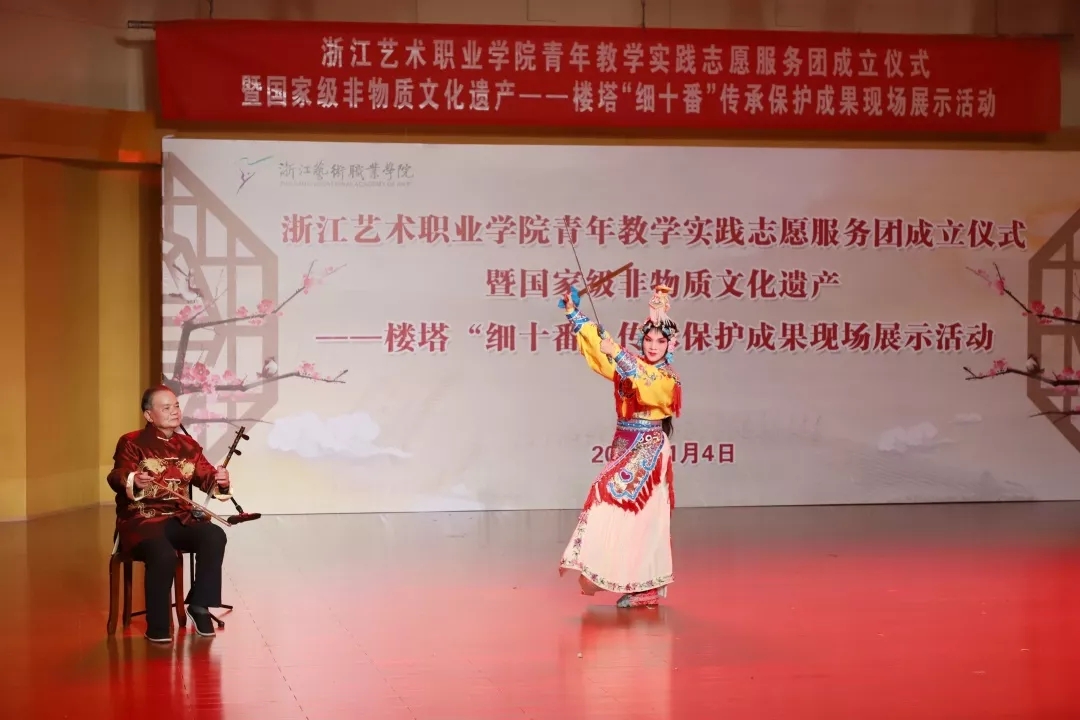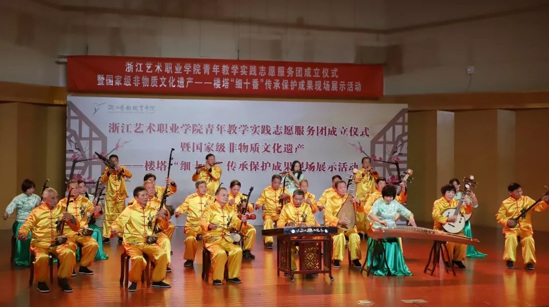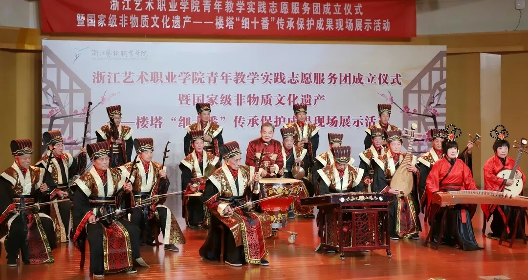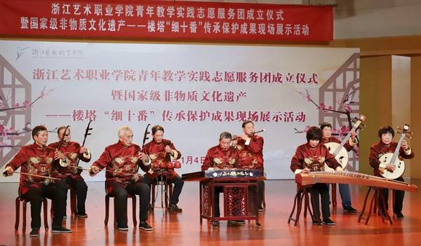 浙艺举行青年教学实践志愿服务团成立仪式暨国家级非物质文化遗产楼塔“细十番”传承保护成果现场展示活动