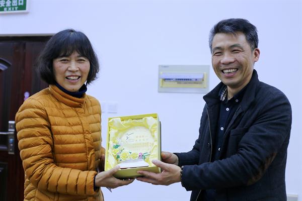 沈军甫向与会教师们介绍了胡海影参加工作四十余年的履历、成绩和荣誉。在工作中她兢兢业业、辛劳付出,对教学事业,她痴心奉献,无怨无悔。作为一名党员,她师德高尚、辛勤耕耘,发挥了先锋模范作用。她把最宝贵的青春年华奉献给了学校,也见证了学校发展和历史的变迁。她是学校2002年以来第一位副高职称的资深辅导员,获得了多项国家级、省级荣誉,可谓桃李满天下。
