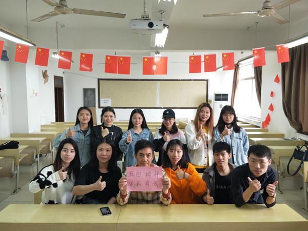 17声乐班、第33期音乐系党校学员班分别组织全体成员高举“爱国、进步、民主、科学”的五四精神,与国旗、团旗合影留念,在校训石旁留下印记,写下了“青春心向党 建功新时代”的坚定初心。