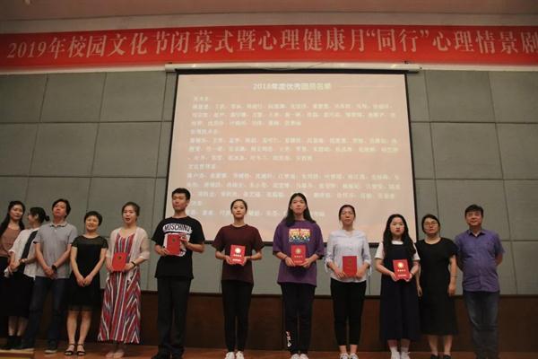 马向东代表校党委致闭幕词,对校园文化节的成功举办表示热烈的祝贺,并为心理情景剧获奖团队颁奖。戏剧系《同学会》获得一等奖;文化管理系《十八岁的礼物》和影视技术系《友谊·同行》获得二等奖;美术系《与你同行》、音乐系《那些花儿》、舞蹈系《余光未及之处》获得三等奖。