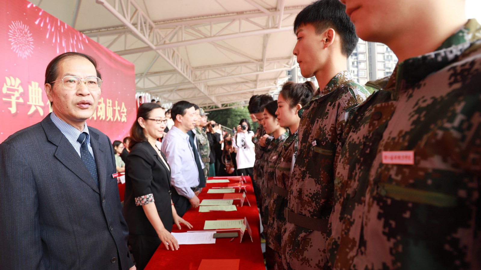 10月13日,浙艺2020级高职新生开学典礼暨军训动员大会在操场举行。党委副书记、院长黄杭娟,党委副书记夏开堂,党委委员、副院长章轲,党委委员、纪委书记徐芳出席。相关职能部门负责人、各系书记、辅导员、新生班主任等参加。典礼由党委委员、副院长沈军甫主持。