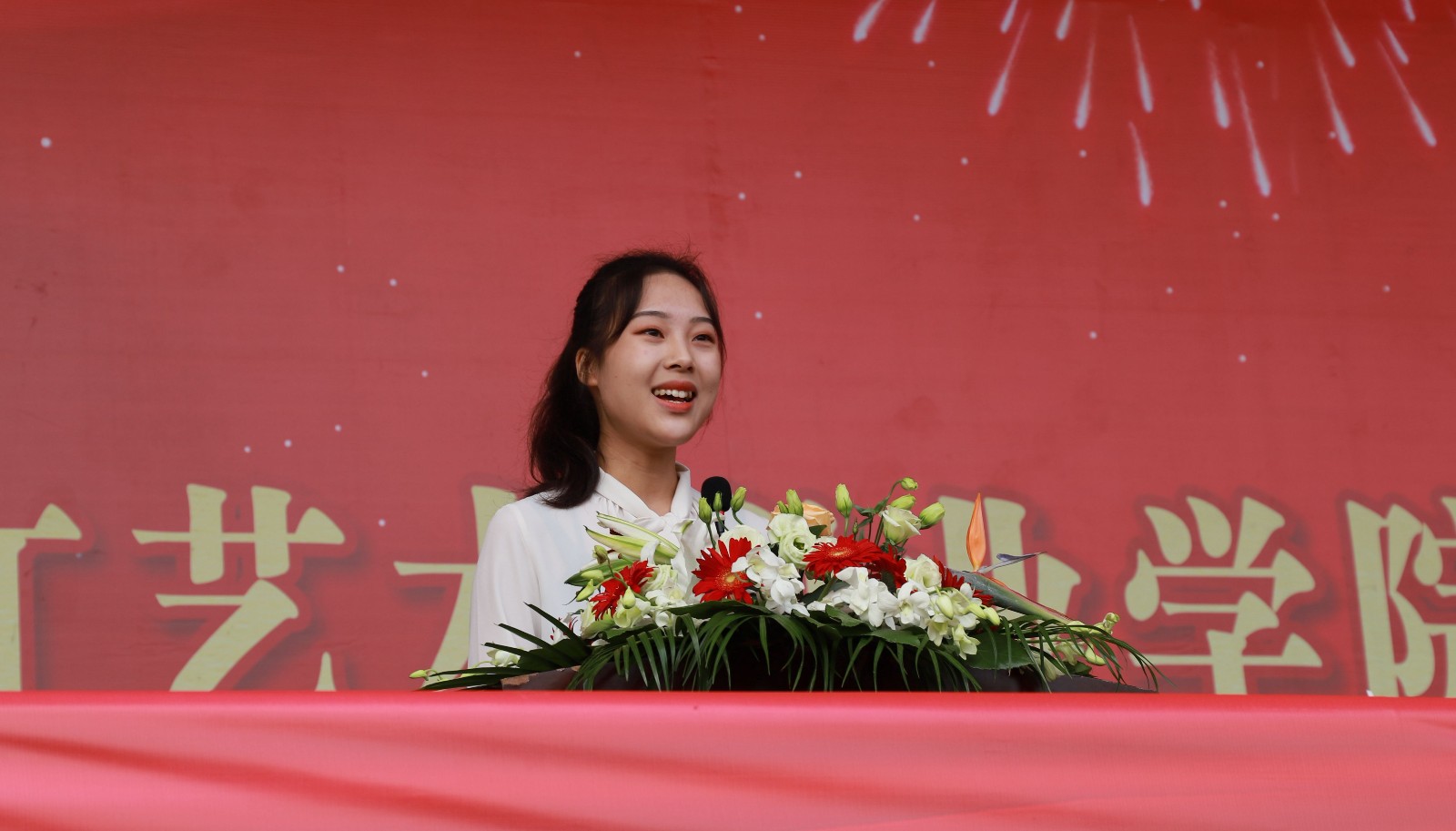 校学生会主席团执行主席、文化管理系章蜜作为在校生代表发言。她分享了自己在校期间的实践经历,鼓励学弟学妹们要找准定位、明确目标,并为之不懈努力。在浙艺这片土地上,发光发热,尽情展示自我。