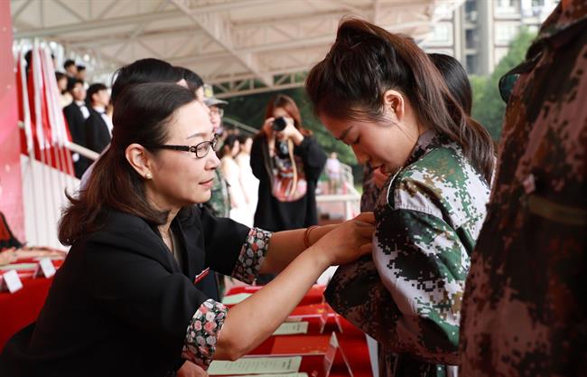 黄杭娟作讲话。她代表学校党委对新同学的到来表示热烈欢迎,向承训部队表示衷心感谢。