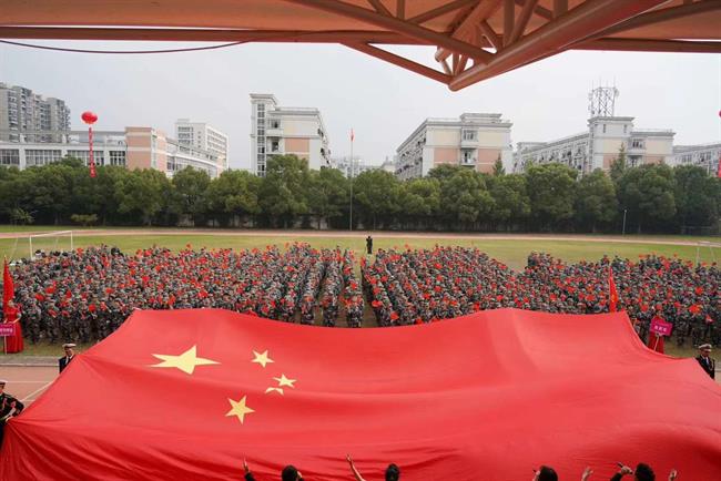 操场上尽是迷彩服与国旗,浙艺2020级高职新生开学典礼,爱了!