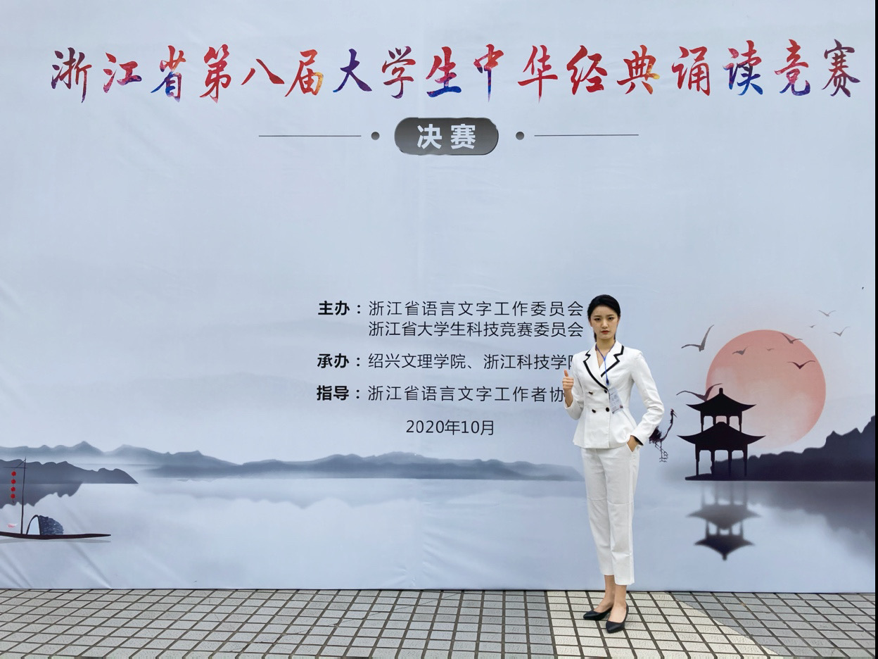 近日,浙江省第八届大学生中华经典诵读大赛在绍兴文理学院落下帷幕。浙江省大学生中华经典诵读竞赛是由省语委、省教育厅联合举办的A类学科竞赛项目。该竞赛旨在贯彻落实习近平总书记关于传统文化教育的系列讲话,进一步落实全国和全省高校思想政治工作会议精神,在全省高校中弘扬中华优秀传统文化,培育和践行社会主义核心价值观,提升大学生的汉语口语表达能力,引领大学生阅读中华经典诗文。