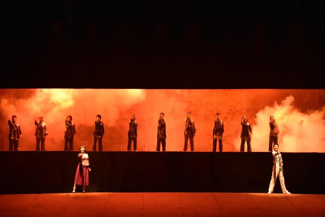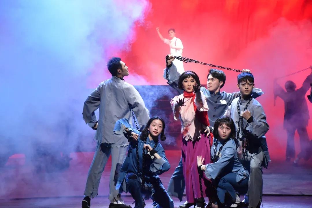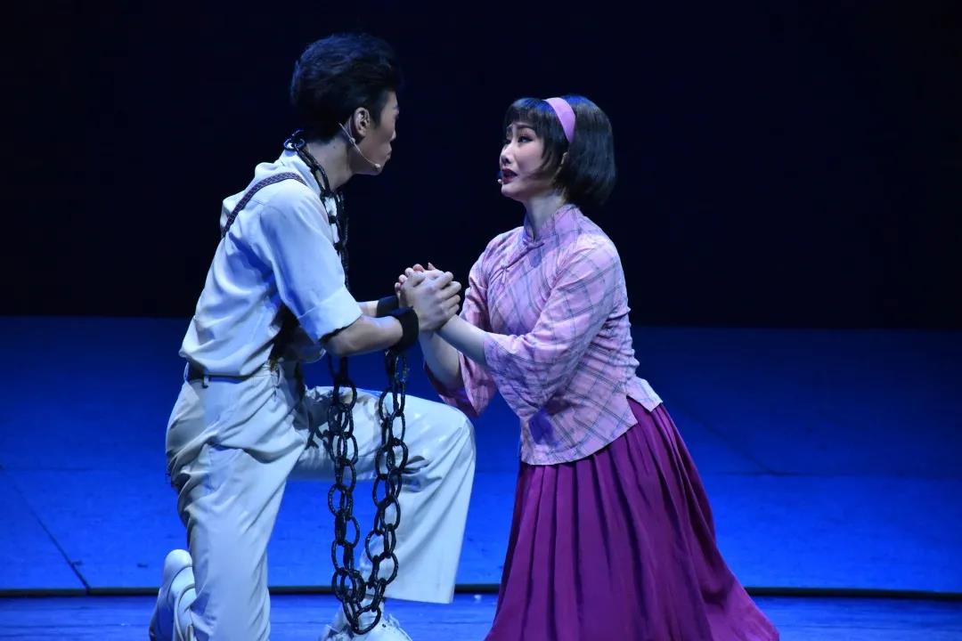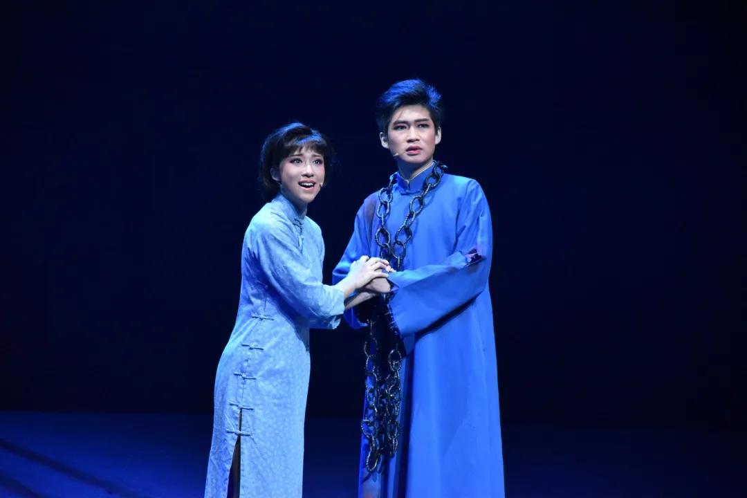 现代越剧《红色浪漫》取材于章轲、黄先钢的长篇纪实文学《红岩魂》,是越剧男女合演的经典剧目,也是浙江越剧团的代表剧目之一。该剧讲述了解放前夕发生在重庆渣滓洞、白公馆监狱中的一段凄美的爱情故事,讴歌了革命先烈崇高的人生观、价值观以及坚贞不屈的革命信念,兼有现实主义的深刻和浪漫主义的激情。青春版《红色浪漫》由著名导演杨小青和周云娟担任导演,2016级戏曲表演(浙越)班全体学生担纲演出。舞台上,同学们以精彩表现,饱含深情地传递出革命志士舍小家为大家的家国情怀、革命先烈为共产主义事业奋斗到底的坚定信仰,讴歌了英雄儿女在革命战争年代的血色浪漫和为追求民族解放不惜牺牲个人幸福的壮烈豪迈。尤其是剧中“诀别”一折,男主人公刘国鋕在英勇就义前与爱人曾紫霞的刑场诀别,凄美浪漫,演员们真情流露,催人泪下。演出在“一曲悲歌终了,便是那天晓的时光”的唱段中落下帷幕,令人仿佛看到了胜利曙光,引起现场观众强烈共鸣,带给观众无限遐想,赢得了现场经久不息的掌声。