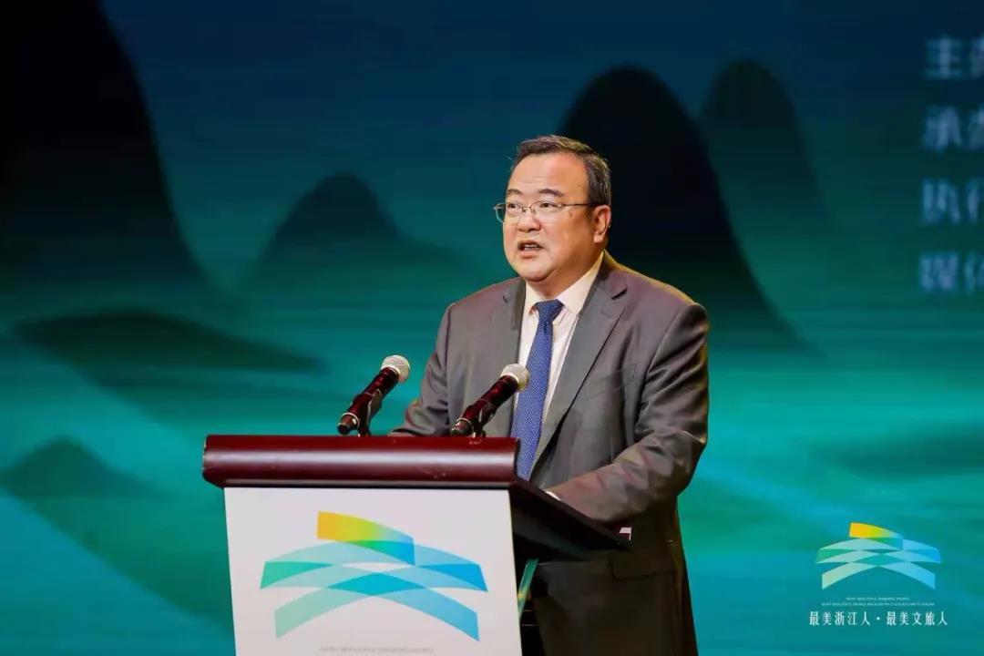 绿水青山,诗画浙江。浙江文旅,你最美丽。为充分展示新时代我省广大文化和旅游工作者凝心聚力、共谋发展、积极服务“重要窗口”建设的精神风貌,在全社会树立正确鲜明的价值导向,大力倡导学习最美、崇尚最美、争当最美的时代风尚,12月15日晚,由中共浙江省委宣传部、浙江省文化和旅游厅联合主办的2020年浙江省首届“最美浙江人·最美文旅人”发布会在浙江音乐厅举行。浙江省政府副秘书长蔡晓春,中共浙江省委宣传部常务副部长来颖杰,浙江省文化和旅游厅党组书记、厅长褚子育,浙江广电集团总裁、党委书记吕建楚,中共浙江省委直属机关工委副书记俞忠勤,浙江省教育厅一级巡视员丁天乐,浙江省人力资源和社会保障厅二级巡视员边强以及浙江省文化和旅游厅所有党组成员等出席活动。