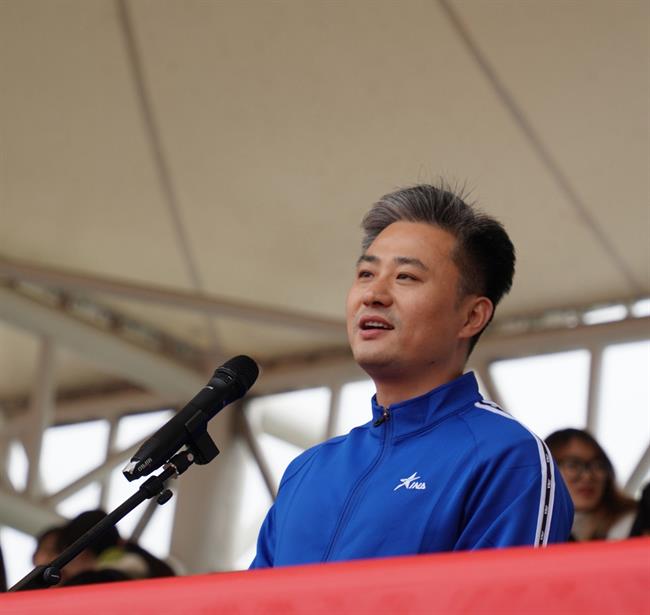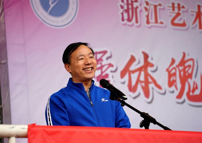 党委书记薛亮致辞。他对浙艺2020年教职工广播操比赛的举行表示祝贺。他希望全体教师以培养德智体美劳全面发展的人才为目标,牢记习近平总书记的教导。人人喜欢运动、人人参与运动,展现浙艺人的运动风采。