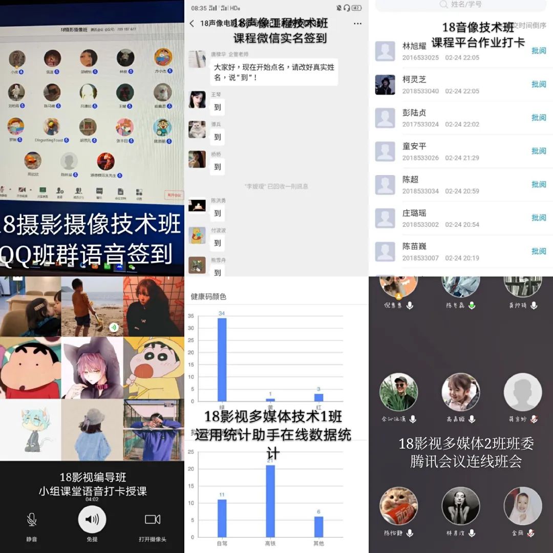 在战“疫”期间,影视技术系的班主任们纷纷拿出学生管理云秘诀,根据自身班级情况开展了不同形式的线上教学管理及学生健康管理追踪,系部18个班级管理班主任班班有绝技。