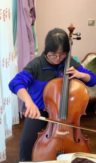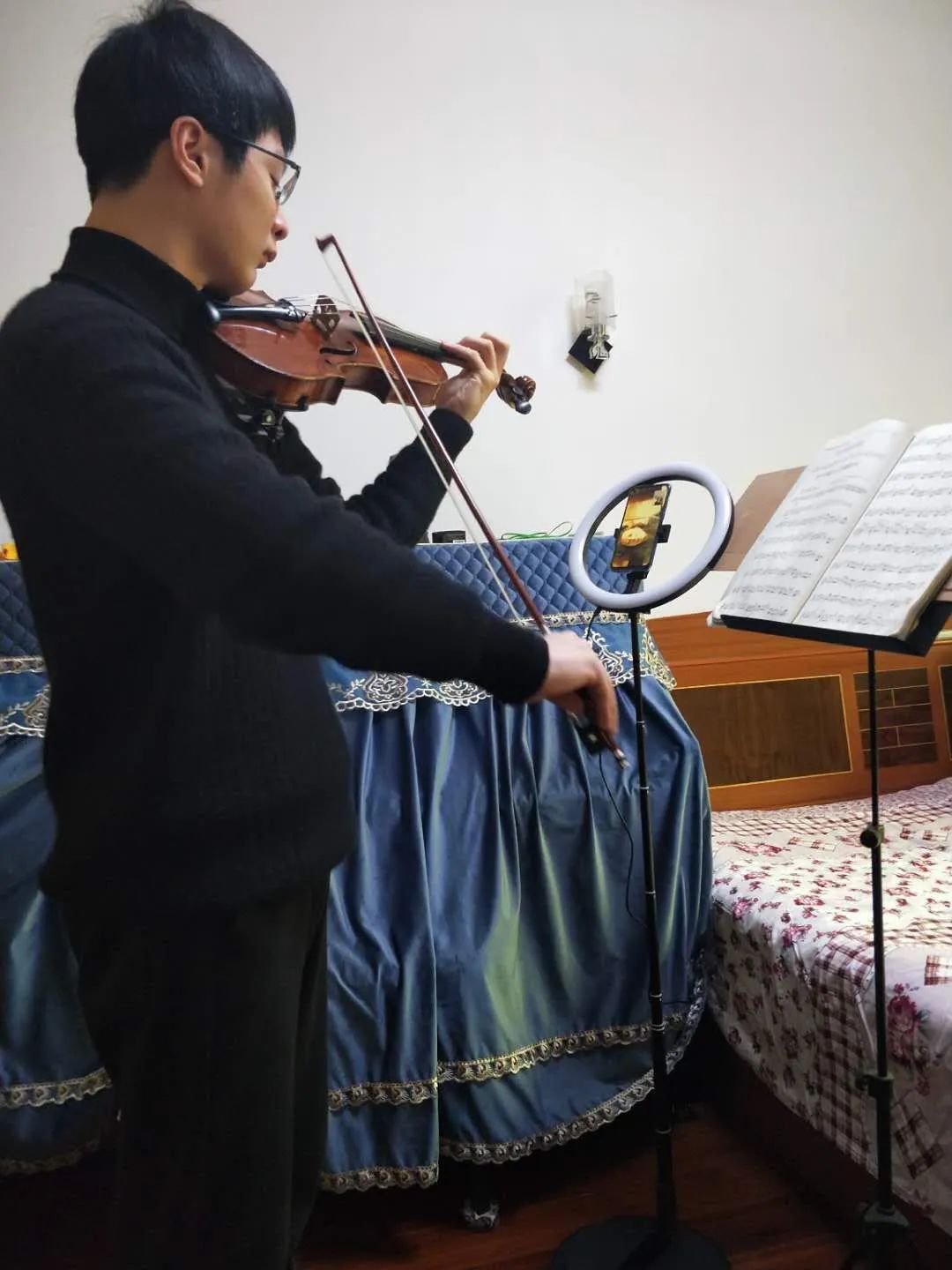 音乐系学子拿起乐器、拨动琴弦,每一个音符都在“云”端跳跃,这些日子在家上课练习,琴艺一定精进不少。