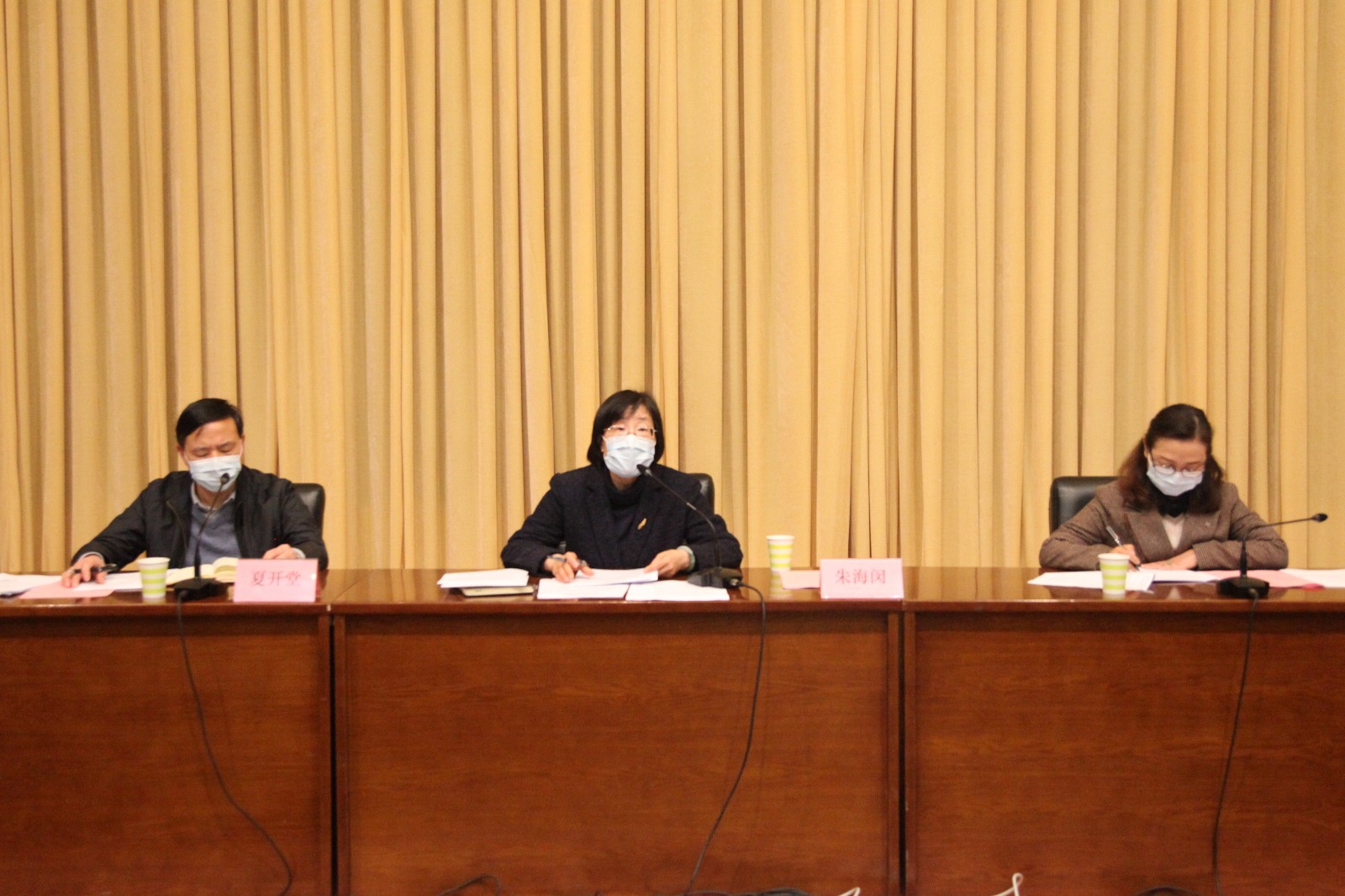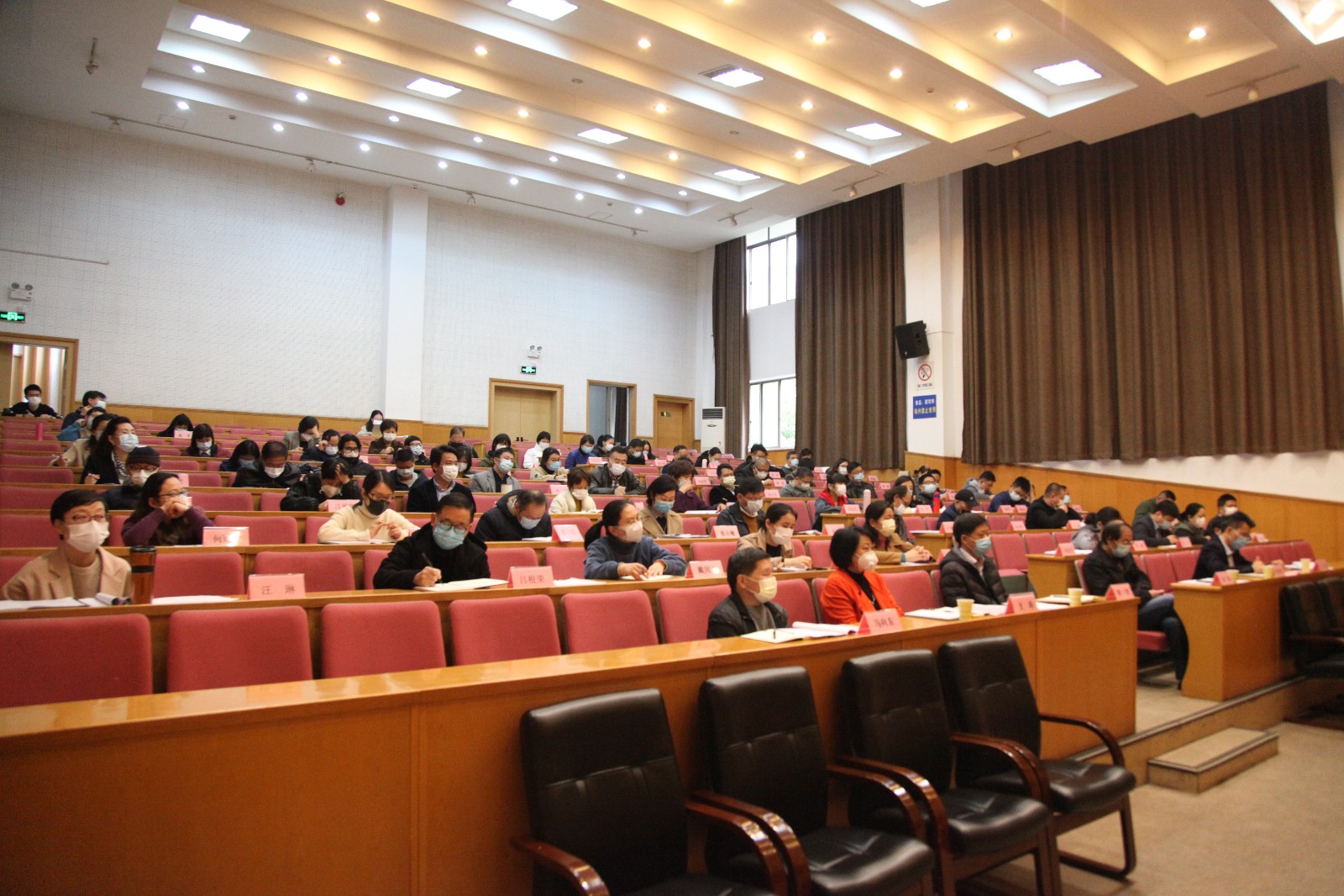 朱海闵作《牢记初心使命,强化担当履职,以高质量党建领航“双高”校建设》专题报告。她在报告中总结回顾了学校在2019年取得的成绩,指出2020年学校党建工作要坚持以习近平新时代中国特色社会主义思想为指导,深入学习贯彻习近平总书记关于教育和高校党的建设重要论述和重要指示批示精神,认真落实十九届四中全会和省委十四届六次全会决策部署,巩固深化“不忘初心、牢记使命”主题教育成果,全面实施“抓院促系、整校建强”铸魂行动,努力实现学校党建工作整体提升、全面过硬,为高质量建成优质校、“双高”校和国内一流高职艺术院校提供思想动力和组织保证。她强调,全体干部要进一步提升对抓好学校党建和思想政治工作重要性和紧迫性的思想认识,贯彻落实深化推进新时代高校党建工作的主要任务,重点在抓好党的政治建设上聚焦聚力,扎实推进“不忘初心、牢记使命”主题教育成果落地转化,把思想政治工作作为党建灵魂工程抓好,加强领导班子和干部队伍建设,全面建强各级基层党组织,提升师资队伍能力素质水平,配优配齐党务干部队伍,深入推进党风廉政建设等项工作上下功夫。