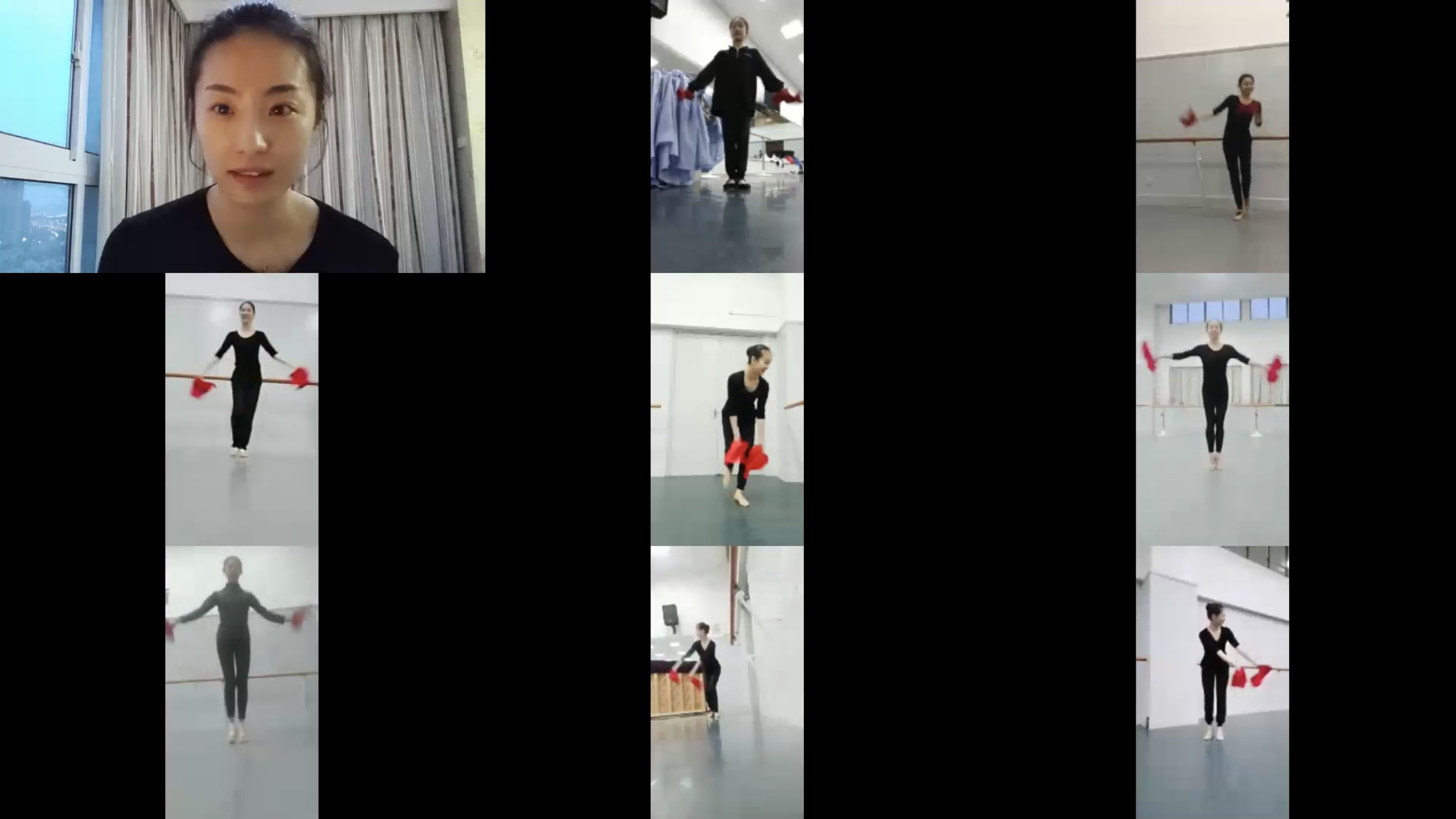 为了提高教学效率,朱婷提前录好教学视频,发给学生,让学生按照视频学习;还事先布置作业,让学生把完成的作业上传到云班课。一有空,她就逐个观看学生的练习视频和作业,进行点评。上课时,她还开展疫情防控知识宣讲,提醒学生要注意个人卫生,注意防护,在家好好练功,不要因为情绪影响学习。为了给抗疫一线的白衣天使加油鼓劲,朱婷还与舞蹈系教师录制视频。