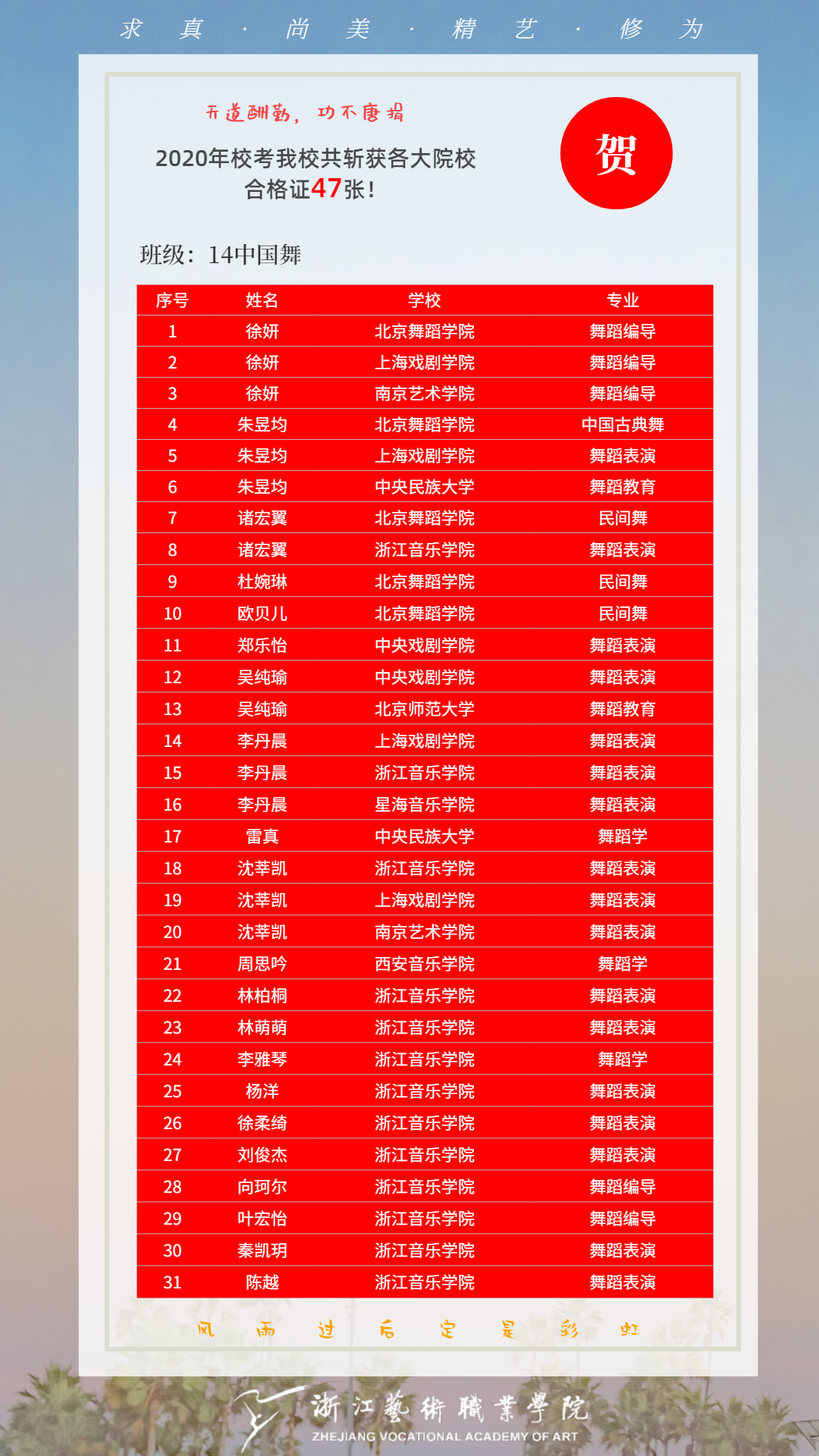 (校考通过学校:北京舞蹈学院、浙江音乐学院)