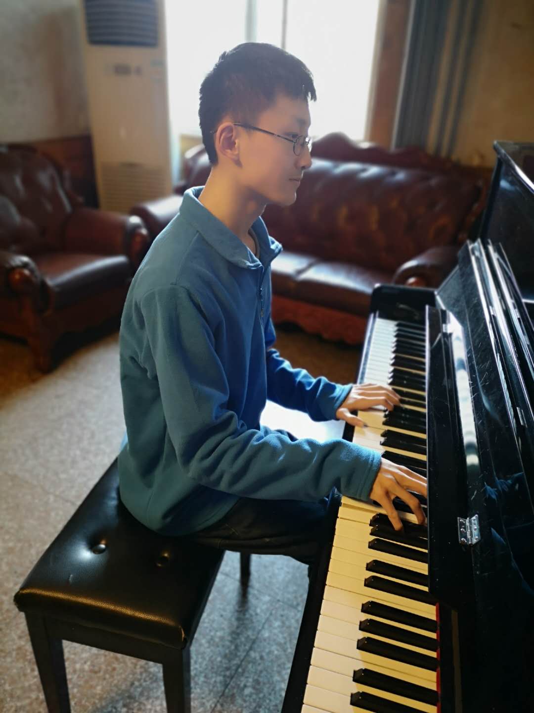 记得第一次见卢涵冰,他给我的印象是一个瘦弱、淳朴的小男孩,性格腼腆。他来自丽水,在家附近琴行学习钢琴,因为很喜欢音乐,所以报考了浙江艺术学校,父母和家庭成员都没有学过音乐,对于今后的高考目标和专业发展规划都不是很清楚。卢涵冰第一次弹给我听的是一首肖邦的《升c小调圆舞曲》,这是一首中等难度的作品,整体完成度尚可,但是演奏方法上有原则性的问题,用力飘得狠,属于基本功不扎实的典型,再加之他瘦弱的身躯,所以“放下去”(弹琴)和“多吃点”(长肉)成了日常我对他说得最多的话。